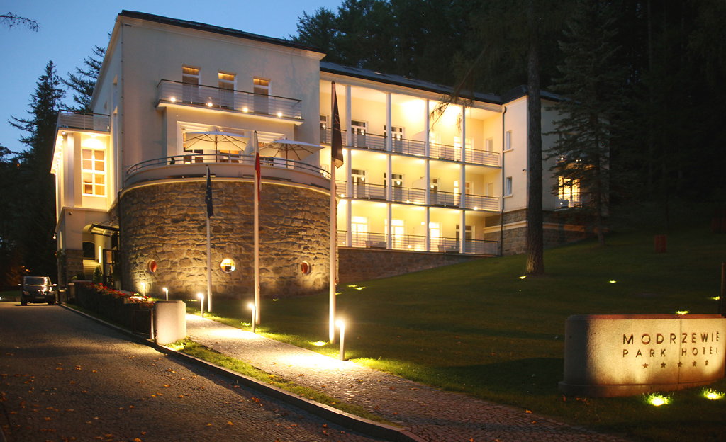 Das Modrzewie Park Hotel in Szczawnica, stimmungsvoll beleuchtet. Fotos: Waldinger