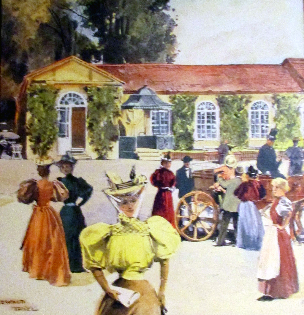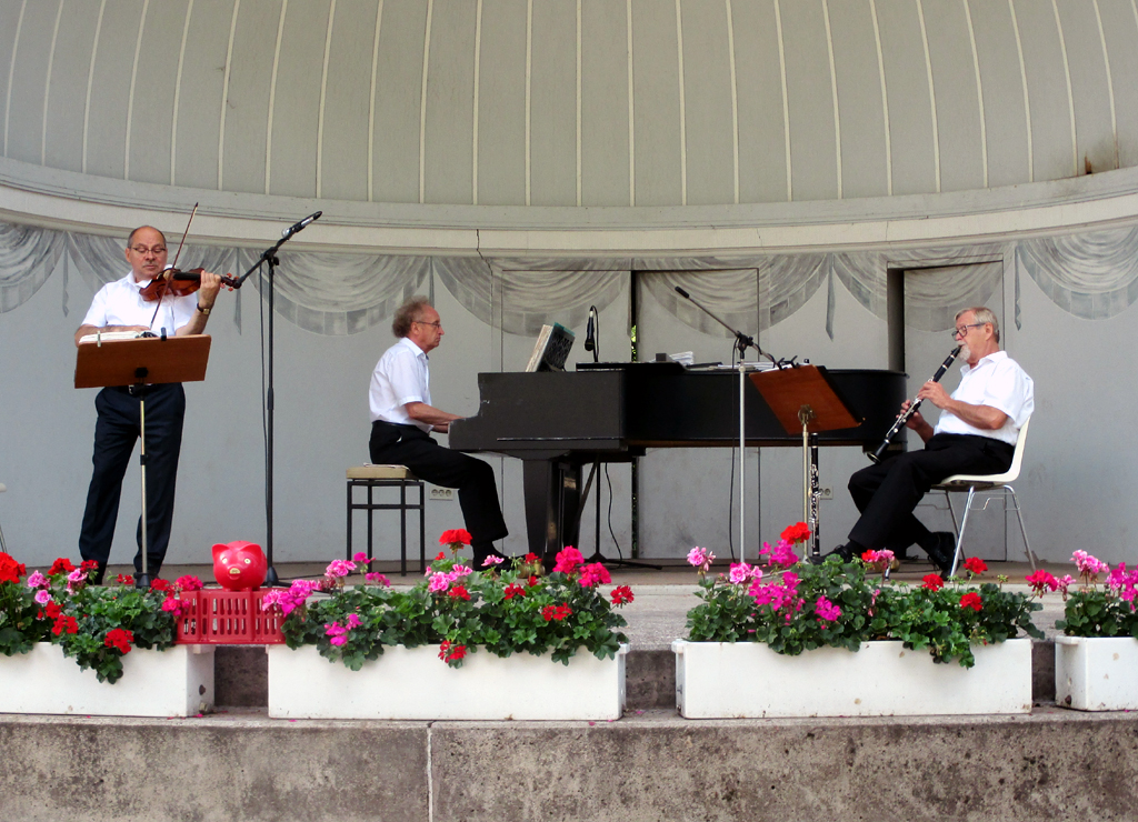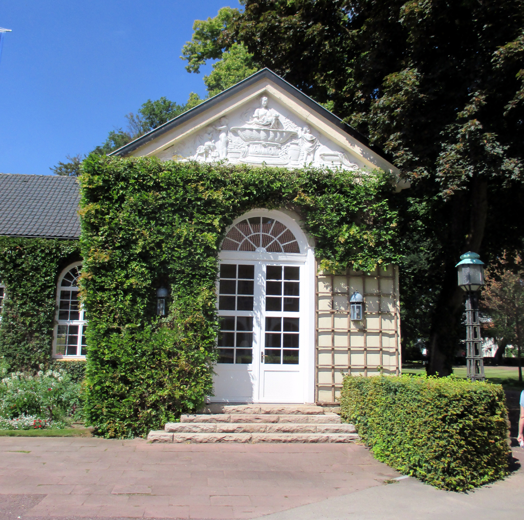 Kastanien, Linden, Eichen. Logier-, Galerie-, Badehäuser, Brunnenarkaden. Das Brunnenhaus selbst ist um die Hauptquelle herum als Trink- und Wandelhalle gebaut. Es gibt verschiedene Themengärten, den Wildpark, den Musikpavillon und eben auch die Konzertmuschel. Im gesamten Komplex gehören heute ebenso Hotel, Golfplatz und Tennisanlage längst dazu.