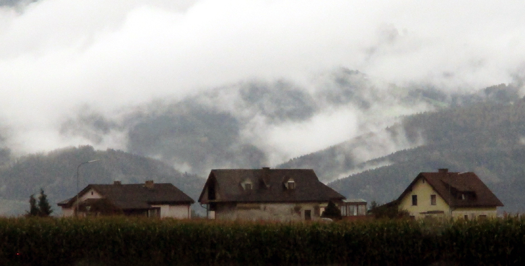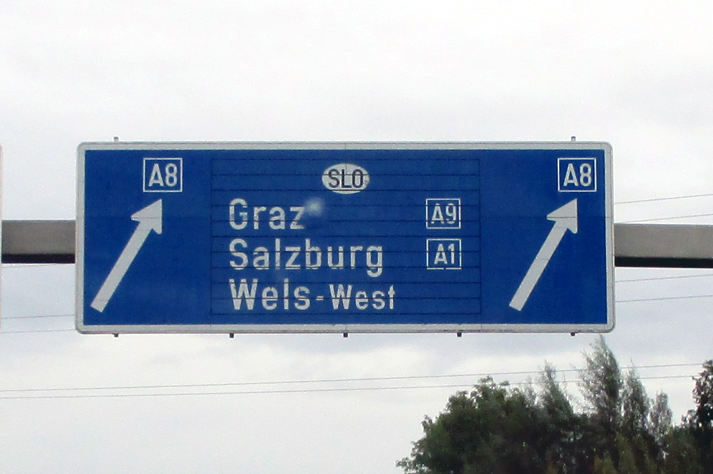 Ein paar Kilometer Bundesstraße. Wechsel auf die Innkreis-Autobahn A8 bis zum Knoten Voralpenkreuz. Weiter auf die Pyhrn-Autobahn A9, auf der sich Richtung Süden, Richtung Steiermark, ein Lkw an den anderen reiht. Ihre Kennzeichen weisen die meisten von ihnen als in Ungarn, Slowakei, Slowenien, Kroatien, Rumänien, Bulgarien, Türkei und Griechenland angemeldet aus. Die bis nach Spielfeld an der Grenze zu Slowenien führende A9 ist eine wichtige Nord-Süd-Achse in Österreich. Wir fahren an Wels, Kirchdorf, Sankt Pankraz, Roßleithen, Spittal und Liezen vorbei. Hinter der Mautstation, wo wir 5,50 Euro bahlen müssen und man uns wissen lässt, dass die Vignette ungültig ist, wenn man sie nicht an die Windschutzscheibe klebt, biegen wir bei Rottenmann ab, um wenigstens das letzte Stück über Land unterwegs zu sein.
