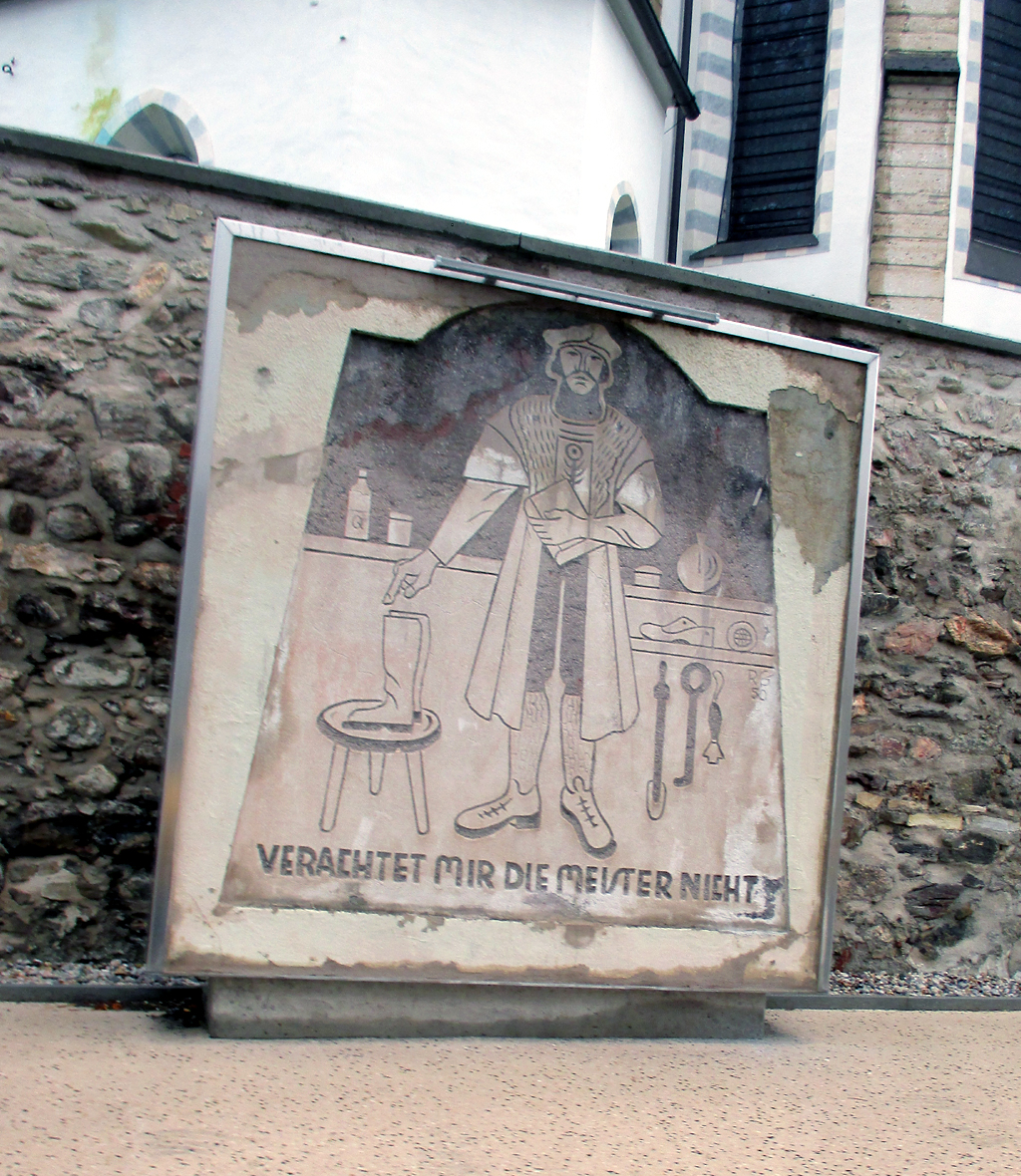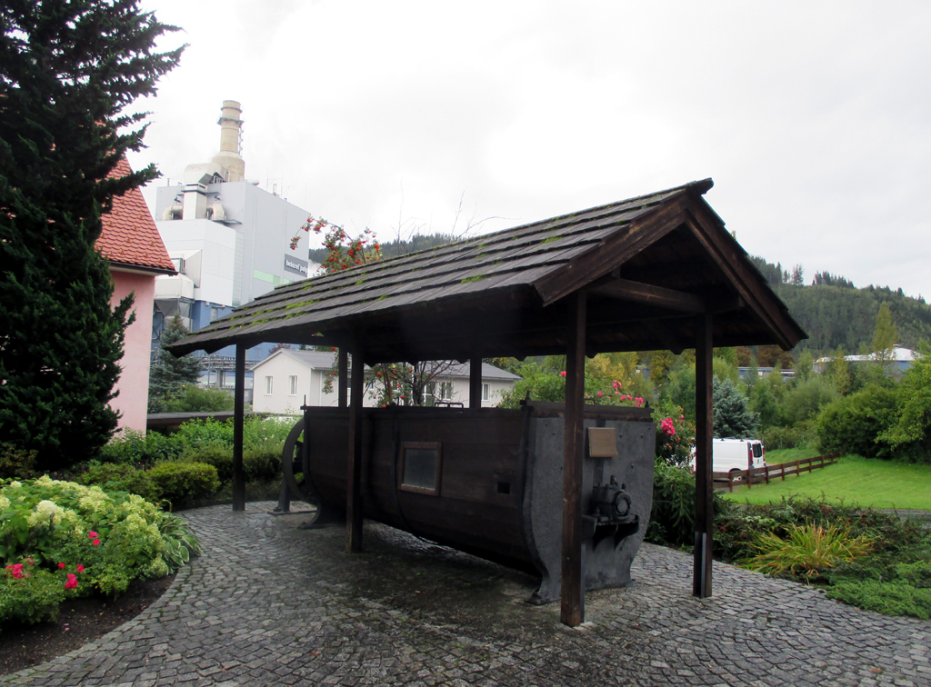 Alte Maschine zur Zellstoffproduktion in Pöls. „Verachtet mir die Meister nicht“, steht auf dem Relief.