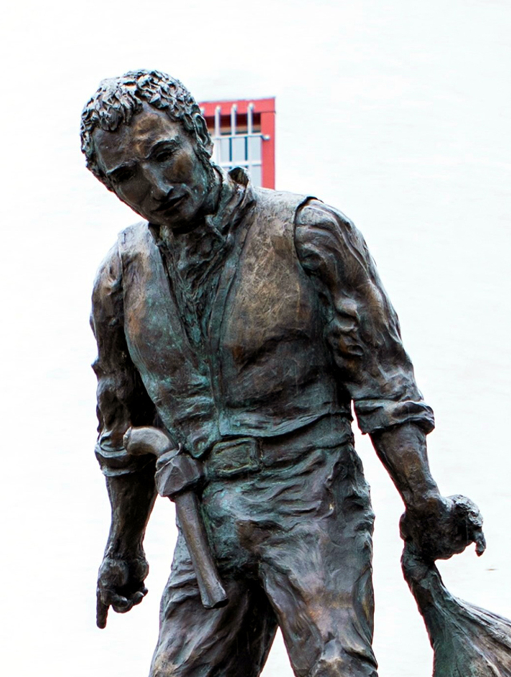 Das Denkmal für den Jäger aus Kurpfalz im Hunsrück bei Pferdsfeld, wo auch Sonnenenergie gewonnen wird, überrascht.