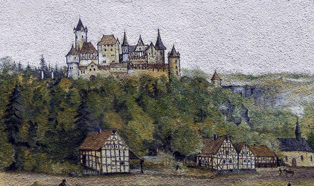 Vorm Schinderhannes-Turm in Simmern (Foto: Eike Dubois/Hunsrück-Touristik GmbH), Gemälde in einem Hunsrück-Dorf.