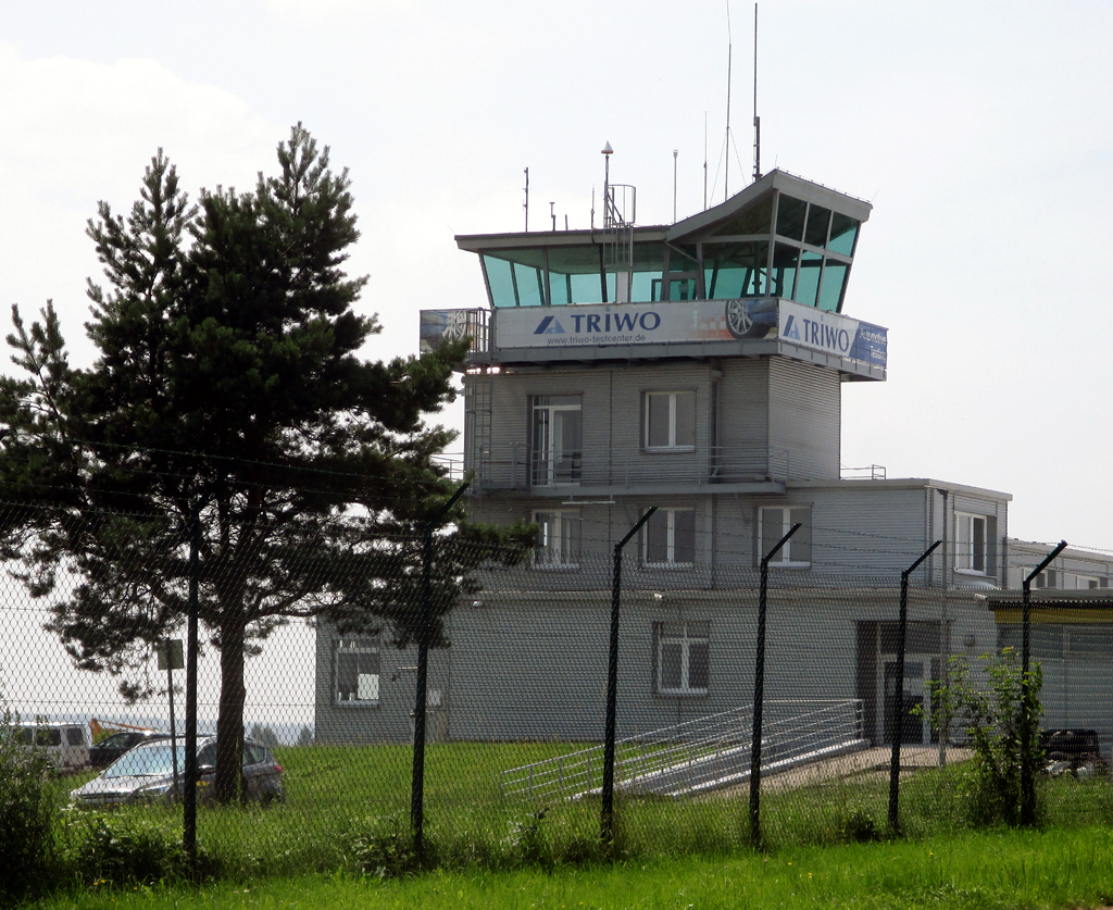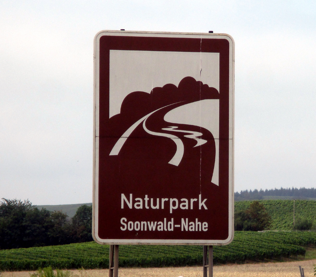 Hinweistafel auf den Naturpark Soonwald-Nahe. Der frühere Tower des alten Fliegerhorsts Pferdsfeld steht noch.