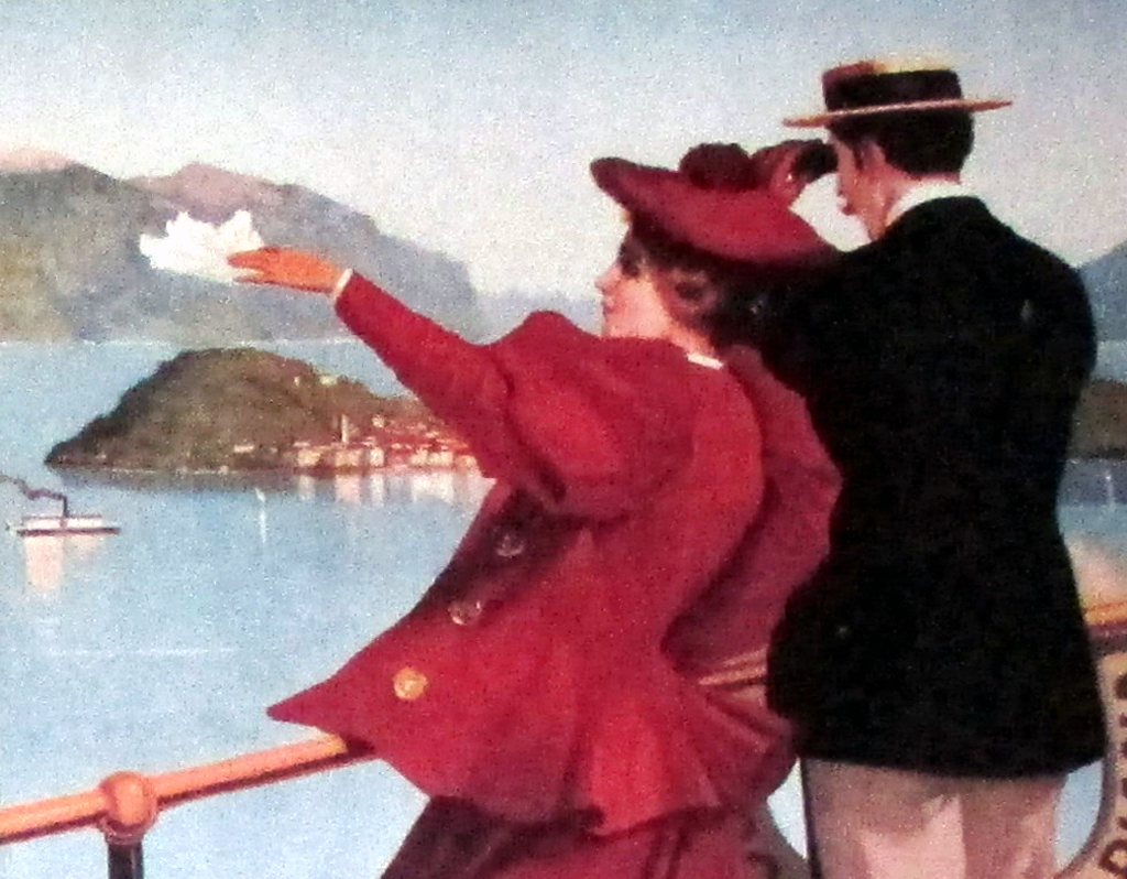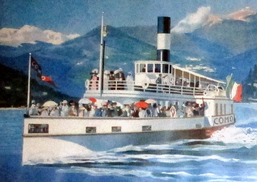 Zwei alte Werbeplakate vom Comer See, rechts noch mit einem der weißen Ausflugsdampfer.