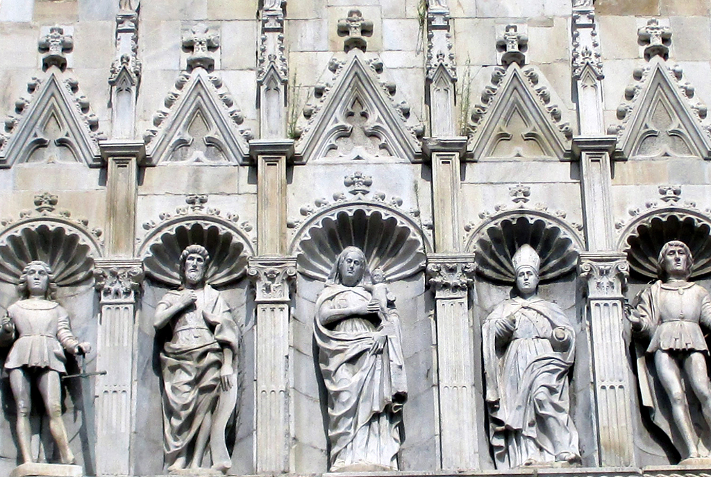 Die Jugend geht natürlich auch im Norden Italiens mit der Mode. Detail an der Kathedrale von Como.