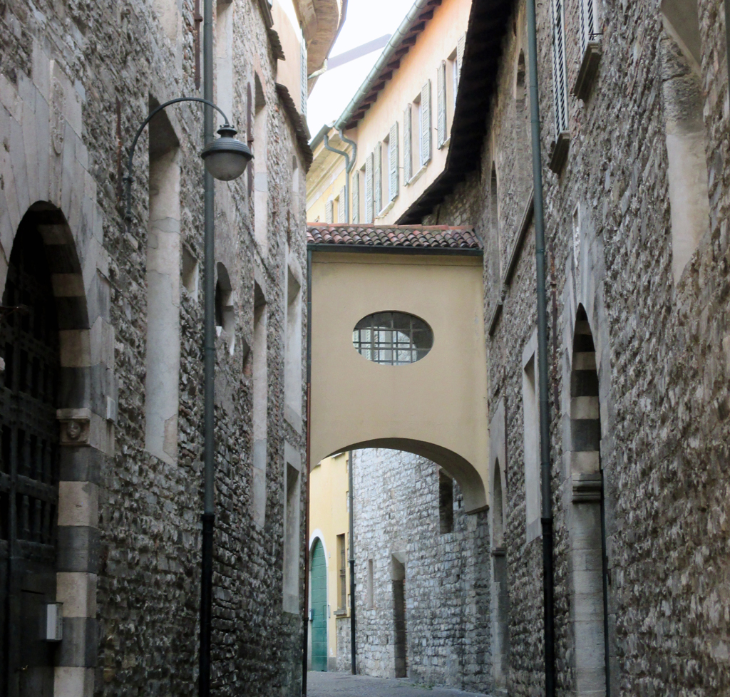 Enge Altstadt-Gasse in Como. Und natürlich darf ein "La dolce Vita"-Filmplakat nicht fehlen.