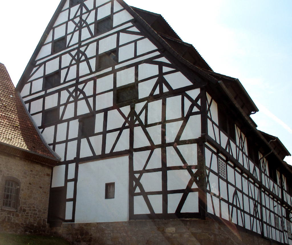 Überhaupt scheinen die dörflichen Einwohner in der Region in verschiedener Hinsicht recht kreativ zu sein. Ein sonst eher tristes landwirtschaftliches Gebäude ist hier noch im Harzvorland auf dem Weg nach Hornburg, wo der deutsche Papst Clemens II. (1005–1047) geboren worden und ein historisches Welfenmuseum beheimatet ist, mit Kuhzeichnungen bemalt.