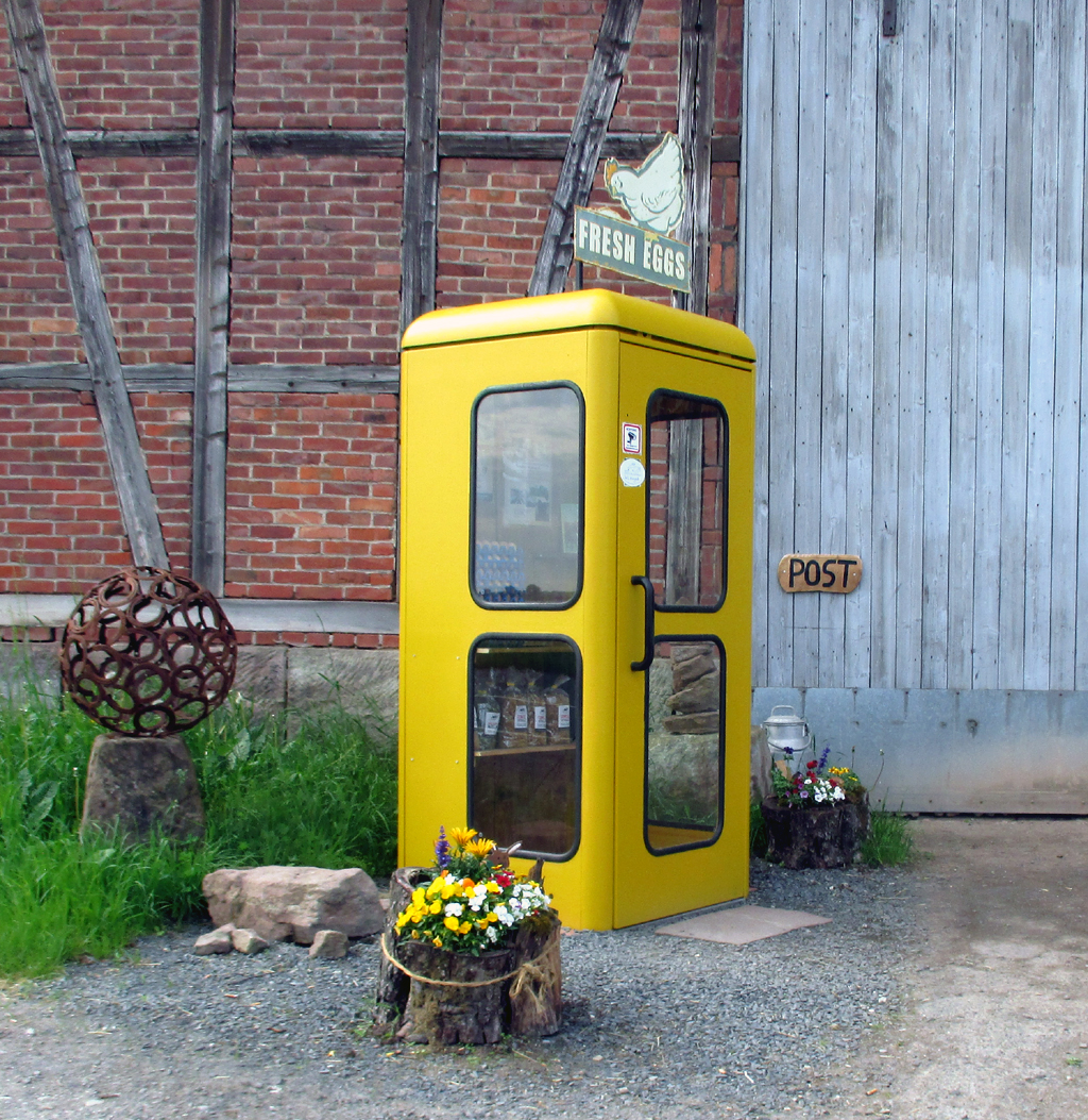 Ein Keilerkopf ist neben einem Pferd auch im Wappen der niedersächsischen Hardenbergs über dem Eingang der Brennerei enthalten. Über eine zweite Route unterhalb des Brockens vorbei führt am nächsten Tag die Fahrt durch den Harz wieder zurück. Auf die Idee, wie hier in Reyershausen in einer Telefonzelle Eier zu verkaufen, muss man erst einmal kommen.