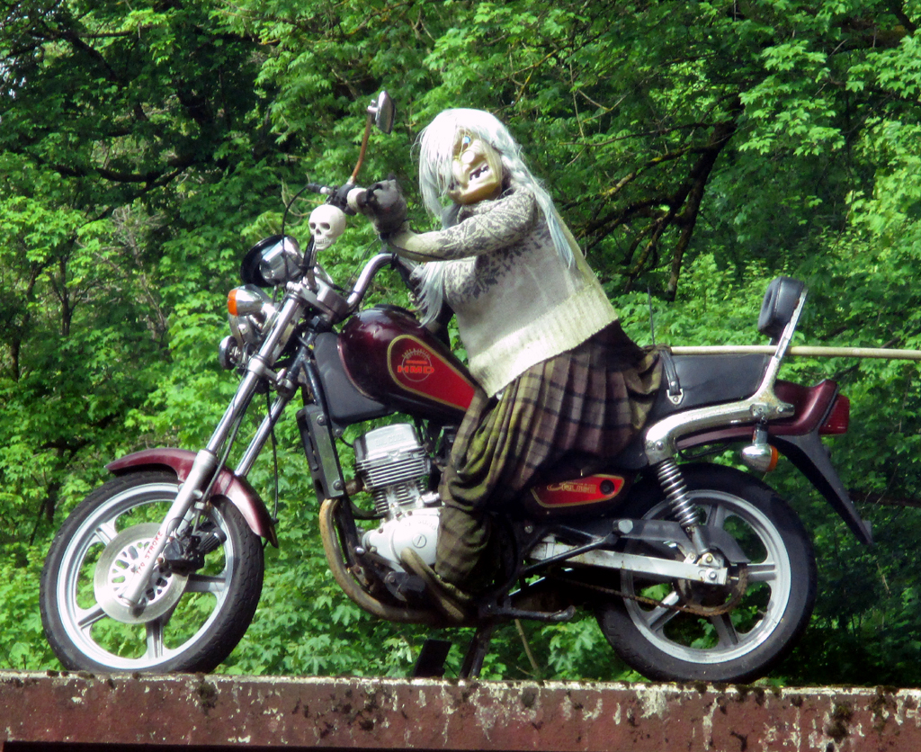 Dazu Hexe auf dem Bike und gestaute Idylle an der Oder