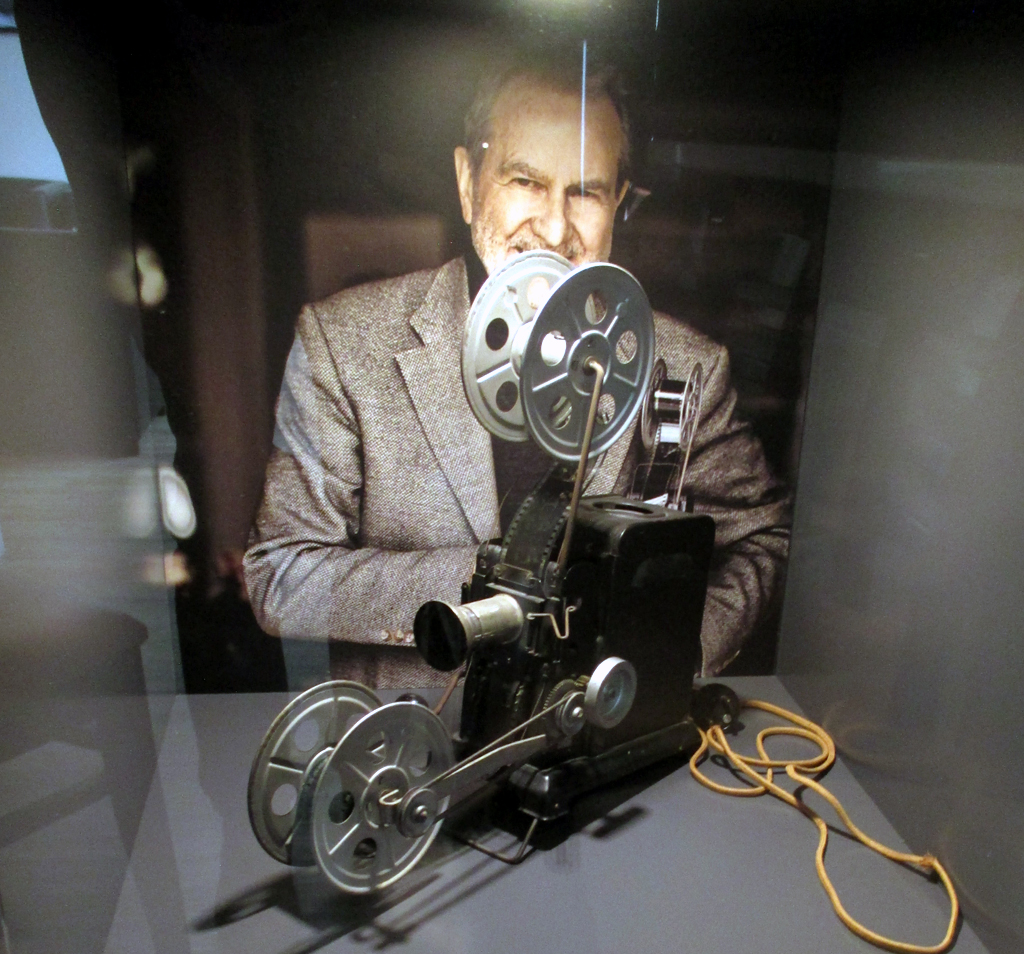 Zurück auf der Hunsrückhöhenstraße. Vom Archäologiepark Belginum ist es nicht weit wieder hinunter ins Tal. Diesmal nach Morbach. 10 500 Einwohner. Katholische Annakirche. Evangelische Erlöserkirche. Modernes Rathaus. Energiepark. Telefonmuseum. Holzmuseum. Burg Baldenau. Burg Hunolstein. Stumpfer Turm. Hoxeler Viadukt. Alles in der Nähe. Im Elternhaus in der Biergasse 5 hat Reitz-Vater Robert einst seinen Uhrmacherladen gehabt. Hier, inzwischen ein Café, sind wir jetzt. Im Café Heimat. Daneben ein kleines (Programm-)Kino. Mit 30 Plätzen das wohl kleinste in Rheinland-Pfalz. Sein Name, natürlich: Kino Heimat. Im Café großformatige Fotos. Aufnahmen von Originalschauplätzen und Filmszenen. Im Treppenaufgang Porträts der über 30 Schauspieler und fast 160 Laiendarsteller. Für die rund 3865 Komparsen hat der Platz wahrscheinlich nicht gereicht. Oben Ausstellungsräume mit Vitrinen. Darin Originaldrehbücher, Originalrequisiten. Und die alte Schreibmaschine, eine rote elektrische IBM, auf der auch einige „Heimat“-Manuskripte entstanden sein sollen.