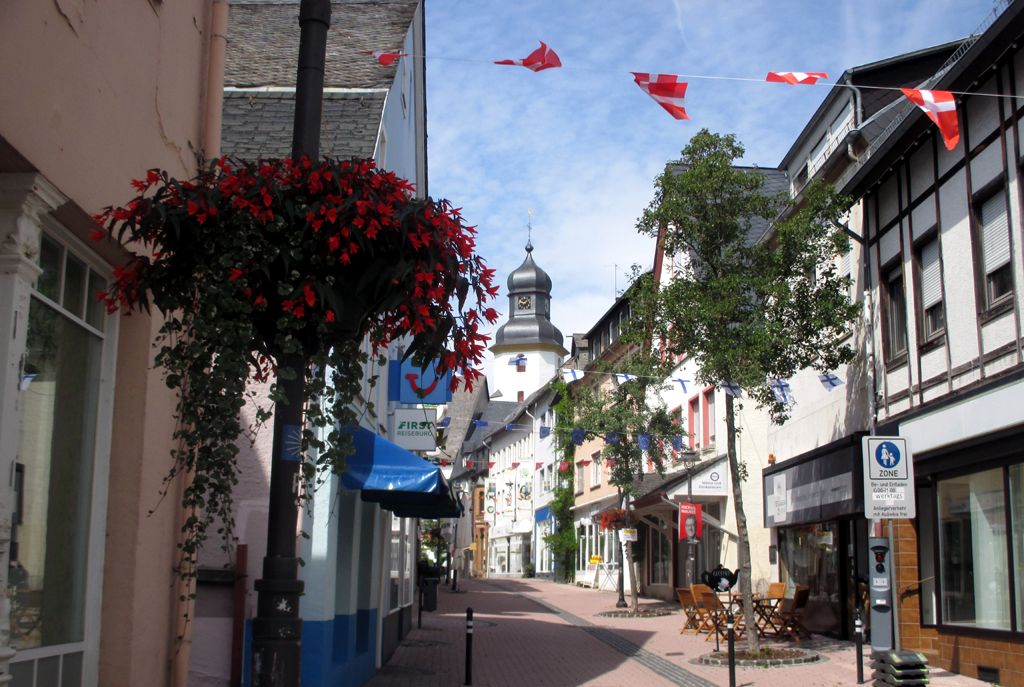 Zweimal Simmern: Oberstraße und Schinderhannes(-Skulptur) samt Kumpan beim Schweineklau.