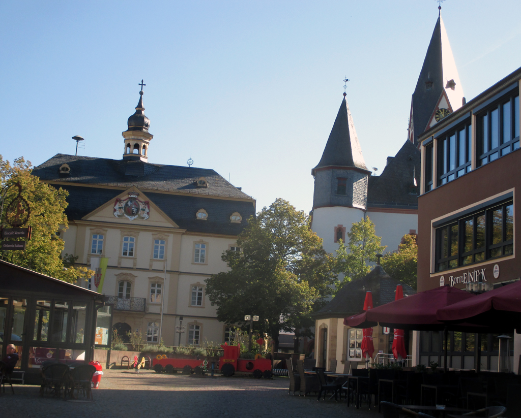 Wir starten unsere in der nächsten Folge näher beschriebenen Erkundungen, folgen dabei weitgehend den Vorschlägen, die uns Laura Heine für drei Tage unterbreitet hat. Erster Tag: Besuch Salinental, Kurviertel und Brückenhäuser in Bad Kreuznach, anschließend Weinprobe auf dem Gut. Zweiter Tag: Wanderung im Rahmen der „Vitaltour Geheimnisvoller Lemberg“. Dritter Tag: Ausflug nach Idar-Oberstein mit Besichtigung von Felsenkirche, Edelsteinmuseum sowie Europas einziger, für Besucher freigegebener Edelsteinmine Steinkaulenberg in der Nähe. Selber nehmen wir uns noch das Freilichtmuseum Bad Sobernheim mit Vorstellung von vier Dörfern samt restaurierten historischen Häusern aus den verschiedenen Regionen von Rheinland-Pfalz vor sowie den insgesamt fast 330 Meter hoch aufragenden, von der Nahe geschaffenen Rotenfels bei Bad Münster am Stein, dessen mächtige, fast 202 Meter hohe und 1200 Meter lange Felswand immerhin als größte Steilwand zwischen den Alpen und Skandinavien gelten soll. Mal sehen, ob wir im Soonwald, ebenfalls nicht weit von der Nahe, die nach dem „Schinderhannes“ benannte Höhle des um 1800 dort sein Unwesen treibenden Räubers Johannes Bückler zeitlich noch schaffen ...