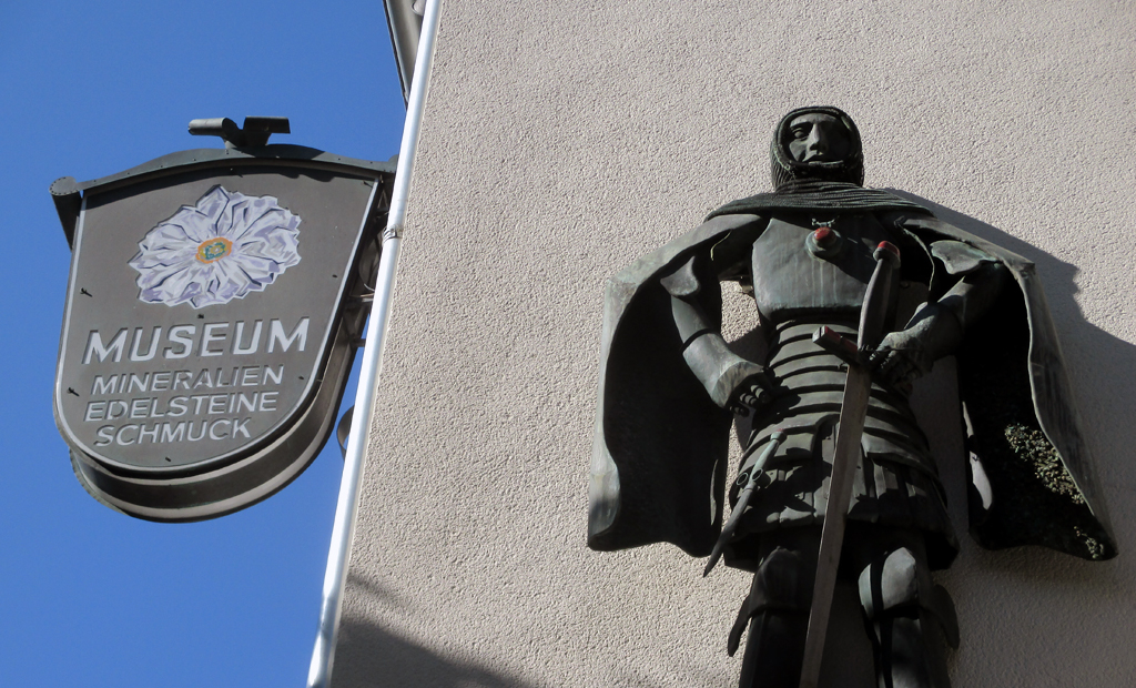 Im Zentrum von Kirn an der Nahe. Wächter am Edelsteinmuseum in Idar-Oberstein.