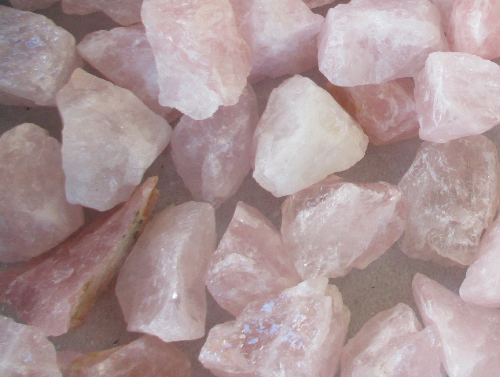 Rosenquarzstücke vor einem Souvenirladen. Im mittelalterlichen Herrstein an der oberen Nahe.