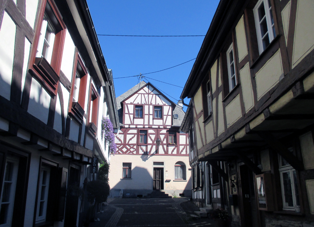 In der Innenstadt von Bad Kreuznach, die auch für ihre Brückenhäuser bekannt ist.