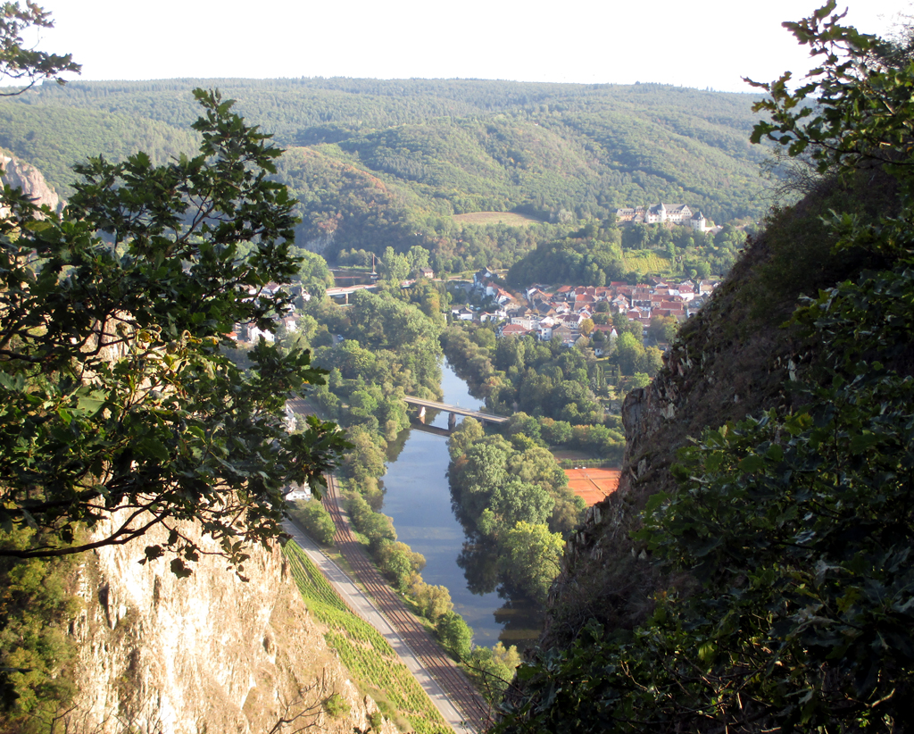 Das Tal der Nahe ist ein Seitental des Rheins. Die Felsen sind schroff ...