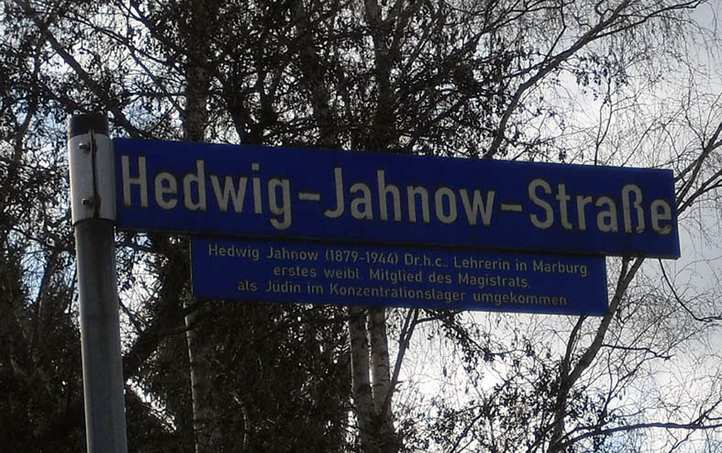 Informationstafeln und Straßennamen weisen auf bedeutende Frauen in Marburg hin, ...