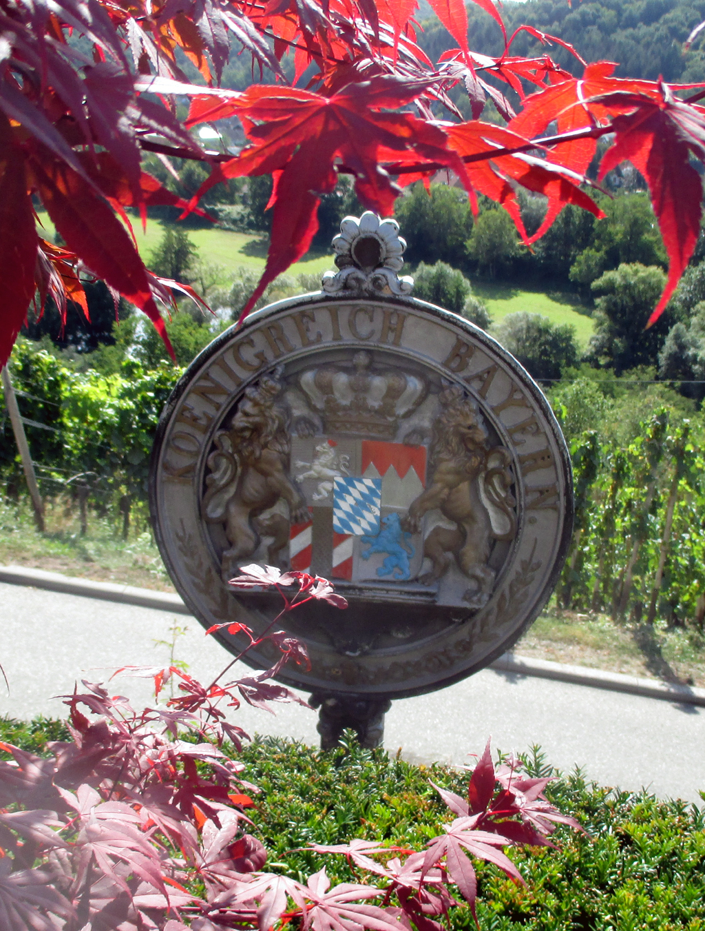 Niederhausen – Ein altes Grenzschild inmitten von Weinbergen, auf dem „Königreich Bayern“ steht. In Rheinland-Pfalz! Bei Niederhausen hoch über der mittleren Nahe! Achim Kirchner, der auf Gut Hermannsberg die Geschäfte führt, klärt auf, dass die Grenze damals tatsächlich hier in der Nähe zwischen Preußen und Bayern verlaufen sei. Wer von der Terrasse des Guts ins Tal schaut, kann am Flussübergang unten mit der alten Brücke bei Oberhausen noch einen weiteren Beleg dafür sehen: „Erbaut unter der Regentschaft Seiner Königlichen Hoheit Prinz Luitpold von Bayern – Anno Domini 1889“.