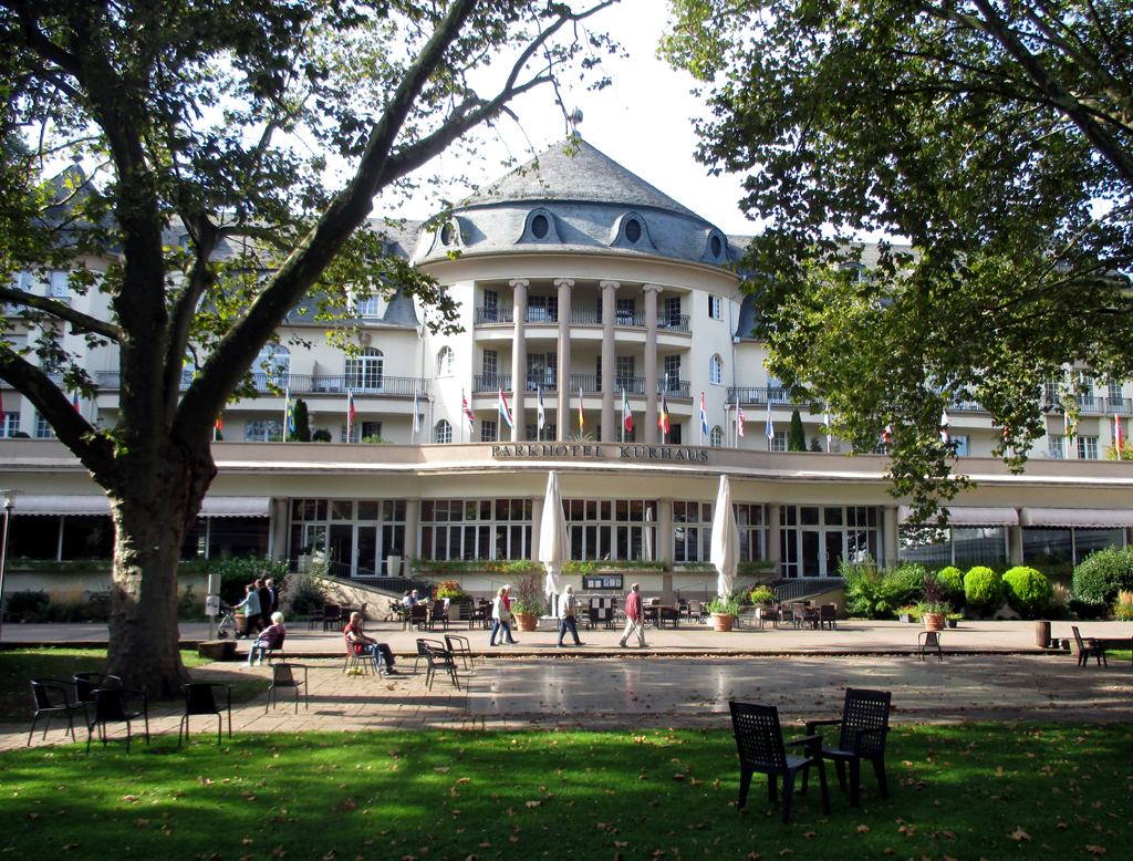Das schmucke Kurhaus-Parkhotel in Bad Kreuznach. Das Freiluftinhalatorium steht im Salinental.