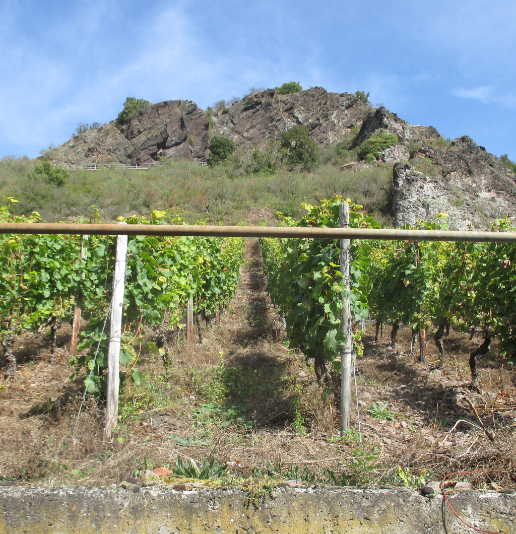 ... zum viel geringeren Wassernachschub für die Reben als „Umstand, der zur Folge hat, dass sich das Wurzelwerk noch tiefer ins Felsgestein orientiert“.