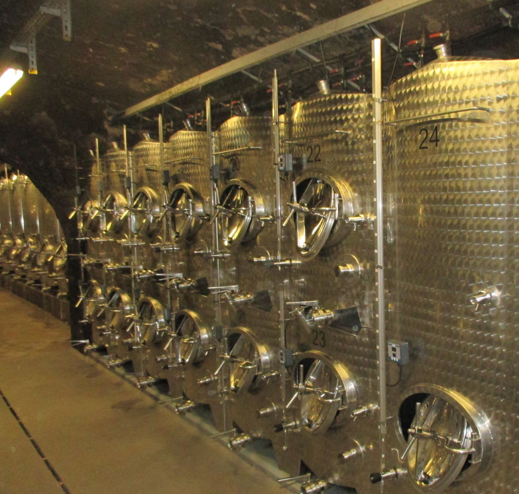 Der Wein gelangt in silberglänzenden Tanks genauso zur Reife wie in Holzfässern.