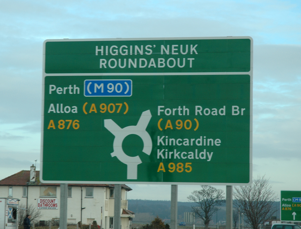 Wegweisung auch zur Forth Road Bridge. Gästehaus unterwegs.