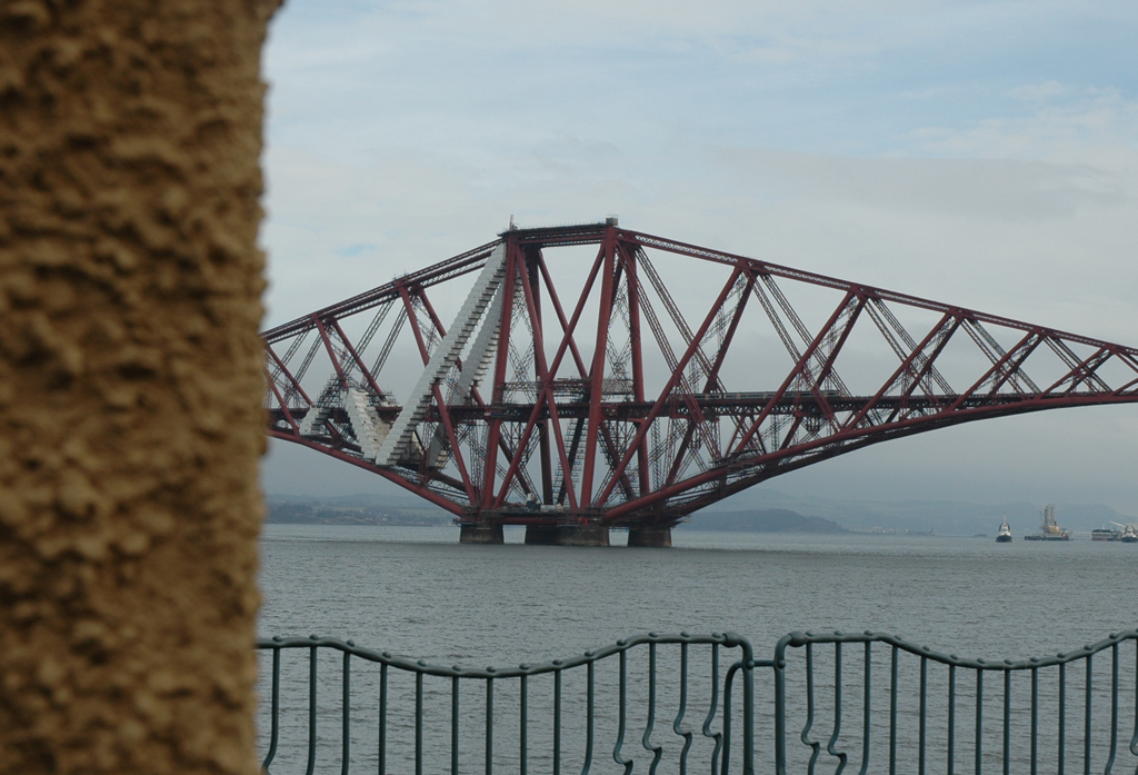 In South Queensferry, einem Stadtteil von Edinburgh, bläst der Wind ganz schön aus Richtung des Fjord-ähnlichen Meeresarmes hinauf durch die Gassen und zwischen den kleinen Backsteinhäusern hindurch, so dass man sich lieber in Paul Stewards Boat House verzieht, von wo aus man auf zwei riesige Brücken schauen kann. Links die Forth Road Bridge für den Auto-, rechts die Forth Bridge für den Eisenbahnverkehr über den Mündungsbereich. 1890 errichtet, rund zweieinhalb Kilometer lang und aus drei massiven, jeweils 110 Meter hohen Fachwerk-Stahlträgern bestehend, an die sich vier kleinere Viadukte anschließen, verfügte sie gegen Ende des 19. Jahrhunderts über die größte Spannweite der Welt.