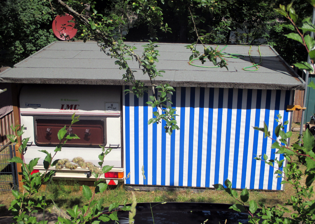 Segelboote schaukeln festgezurrt auf dem Wasser, durch das Ruderer hinter einem großen Tretboot-Schwan ziemlich weit draußen rhythmisch pflügen. An einem Anleger scheint ein kleiner Junge das Paddeln im Stehen schon umsetzen zu wollen, indem er auf wackligen Beinen – leider immer wieder vergeblich – versucht, auf einem Surfbrett Halt zu finden; wenigstens hat er eine Schwimmweste an. Die Ziegen auf einer Wiese etwas weiter oben über dem See dürfte all das kaum interessieren; sie meckern trotzdem unentwegt, obwohl ein Schild am Zaun mahnt: „Rumzicken verboten!“ Außerdem hat da offenbar jemand seine nur noch von Schnürsenkeln notdürftig zusammengehaltenen Wanderschuhe vergessen, die beide gleich über der Sohle nach vorn komplett offen sind ...