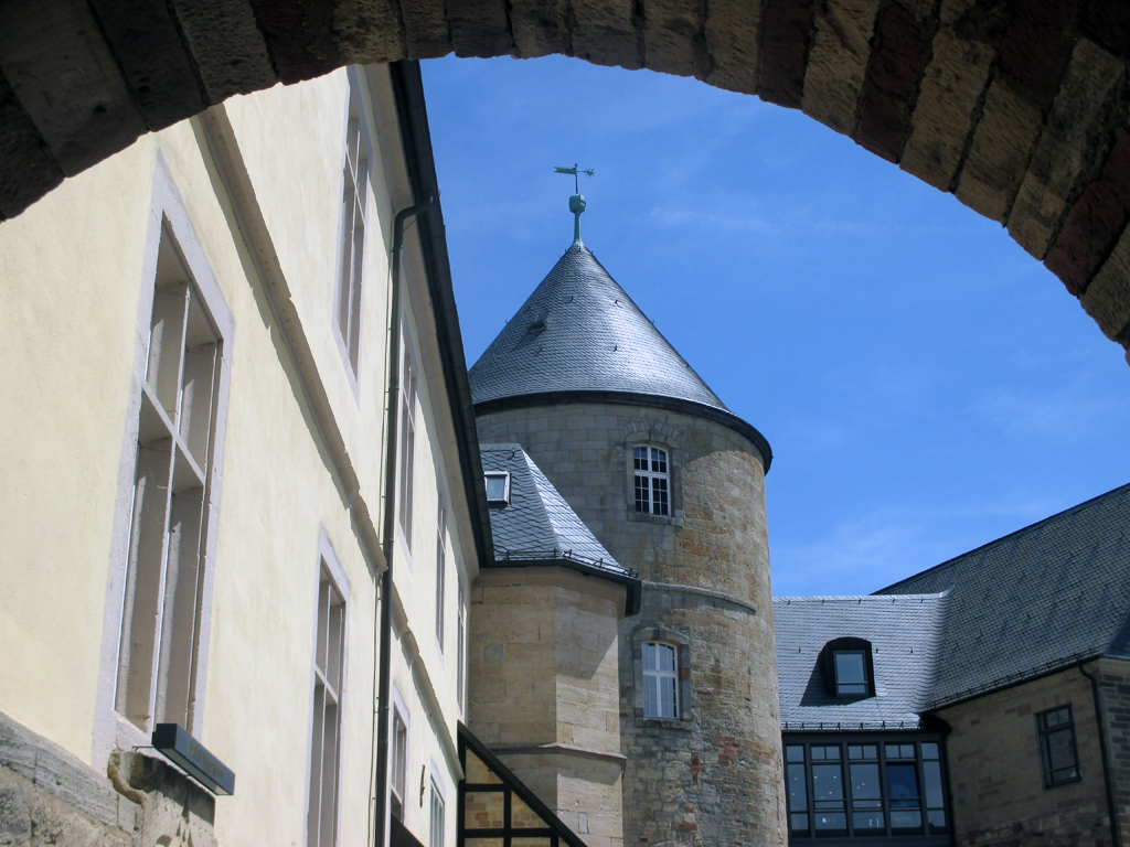 Rundfahrt um den See. Kurz vor Vöhl biegen wir ab, erreichen über Basdorf und die Halbinsel Scheid Waldeck, knapp 7000 Einwohner, Luftkurort, Nationalparkstadt inmitten des Waldecker Berglands und noch im äußeren Einzugsbereich des Naturparks Kellerwald-Edersee. Wahrzeichen der Stadt und des Landkreises ist das gut 400 Meter hoch über dem See thronende Schloss, eine Burganlage aus dem 12. Jahrhundert auf steilem, felsigem, an den Hängen bewaldetem Berg, von dem aus man weit über den per Gondelbahn verbundenen See mit der Sperrmauer und in den Kellerwald rüber schauen kann. Die vollständig erhaltende Höhenburg, früh in öffentliches Sondervermögen, danach in die Waldeckische Dominalverwaltung übergegangen, war Festung, Residenz, Wohnstätte, Gefängnis, Zucht- und Arbeitshaus, ist heute Hotel und Restaurant. Bergfried, Pulverturm, Kanonen und rekonstruierter Pranger stehen noch.