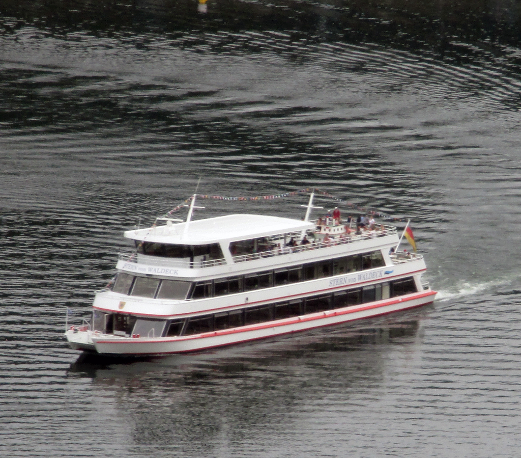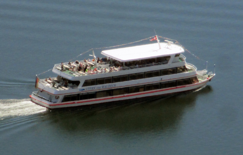 Personenschiff „Stern von Waldeck“. Wer will, kann über die Talsperre spazieren.