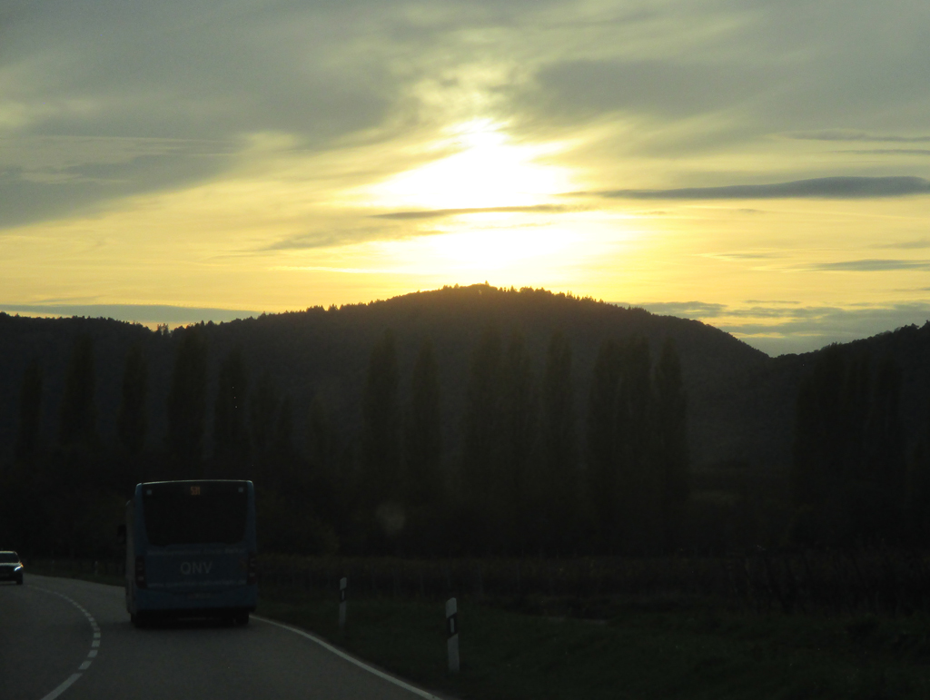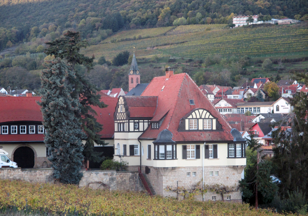 Pleisweiler-Oberhofen – Die Pfalz einmal anders! Nicht zur Weinlese im spätsommerlichen September. Nicht im frühherbstlichen Oktober, der eigentlich als der „Goldene“ gilt. Nein, diesmal im vermeintlich tristen November danach. Wenn die Trauben am Rebstock längst abgeerntet, die ersten Blätter schon gefallen sind. Wenn die Zeit des Rebschnitts beginnt, der für den neuen Austrieb im nächsten Jahr sorgen soll. Dann entwickelt auch die Kulturlandschaft der Pfalz im warmen Licht der im Westen hinter den Hügeln des Pfälzer Waldes untergehenden Sonne ihren eigenen, ganz besonderen, manchmal sogar melancholischen Charme inmitten einer jahreszeitlich noch immer vorhandenen, nur stilleren Symphonie gelblicher, rötlicher und bräunlicher Farben der Natur. Wir sind auf der Deutschen Weinstraße unterwegs.