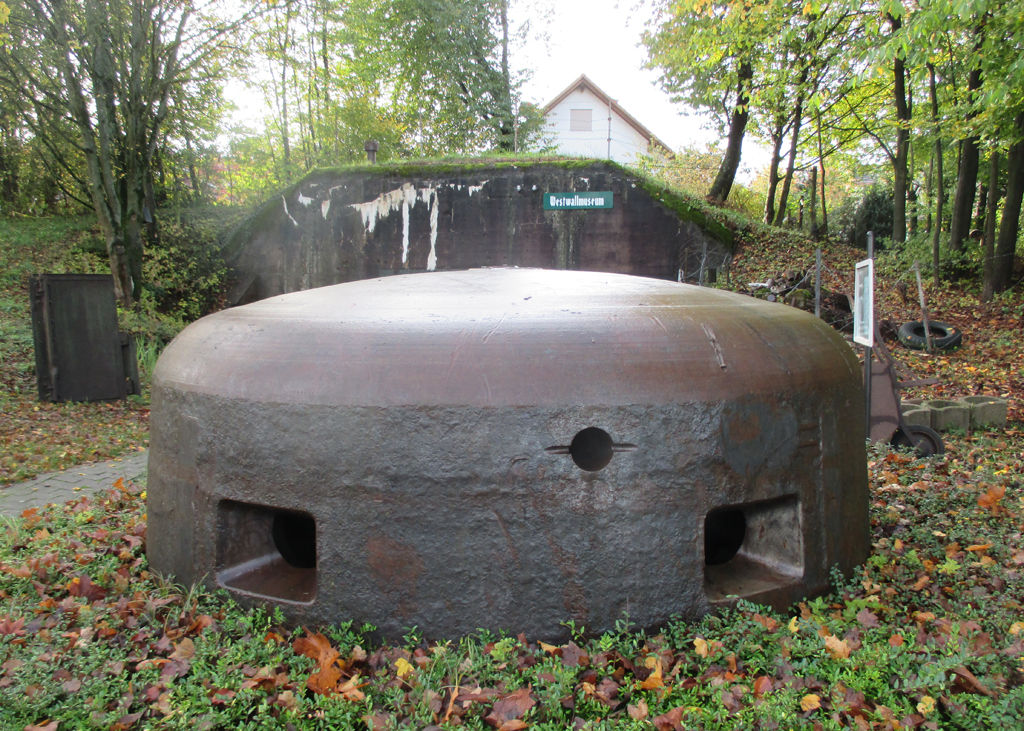 Am nächsten Tag. Wir wandern. Nach Bad Bergzabern – Kurort, 8500 Einwohner, Kurpark, Südpfalz-Therme, Schloss, Kloster Liebfrauenberg, Dicker Turm, die gebürtige Jüdin Edith Stein, die dem Holocaust zum Opfer fiel, vorher hier zum katholischen Glauben konvertierte, Martinskirche, Marktkirche und Palmen (!) in der Marktstraße – ist es an Wiesen und Weinlagen vorbei nicht weit. Am Ende des Industriegebiets Richtung Innenstadt schließt sich scheinbar unscheinbar das kleine Freiluftareal des Westwallmuseums an. Im Zweiten Weltkrieg ist die Stadt aufgrund ihrer Lage in der sogenannten Roten Zone zur Frontstadt ernannt und entsprechend befestigt worden. Der Museumsbunker ist im Originalzustand erhalten. Den daneben haben die Bad Bergzaberner der Entwicklung, Errichtung, Nutzung und Bedeutung der noch vorhandenen Reste der Bunkeranlagen in unseren Tagen gewidmet. Im dritten mit rekonstruiertem Innenraum finden sich militärisches Fernmeldematerial, Unterkunftsbereich, Munitionslager und ein 10,5-Zentimeter-Originalgeschütz.