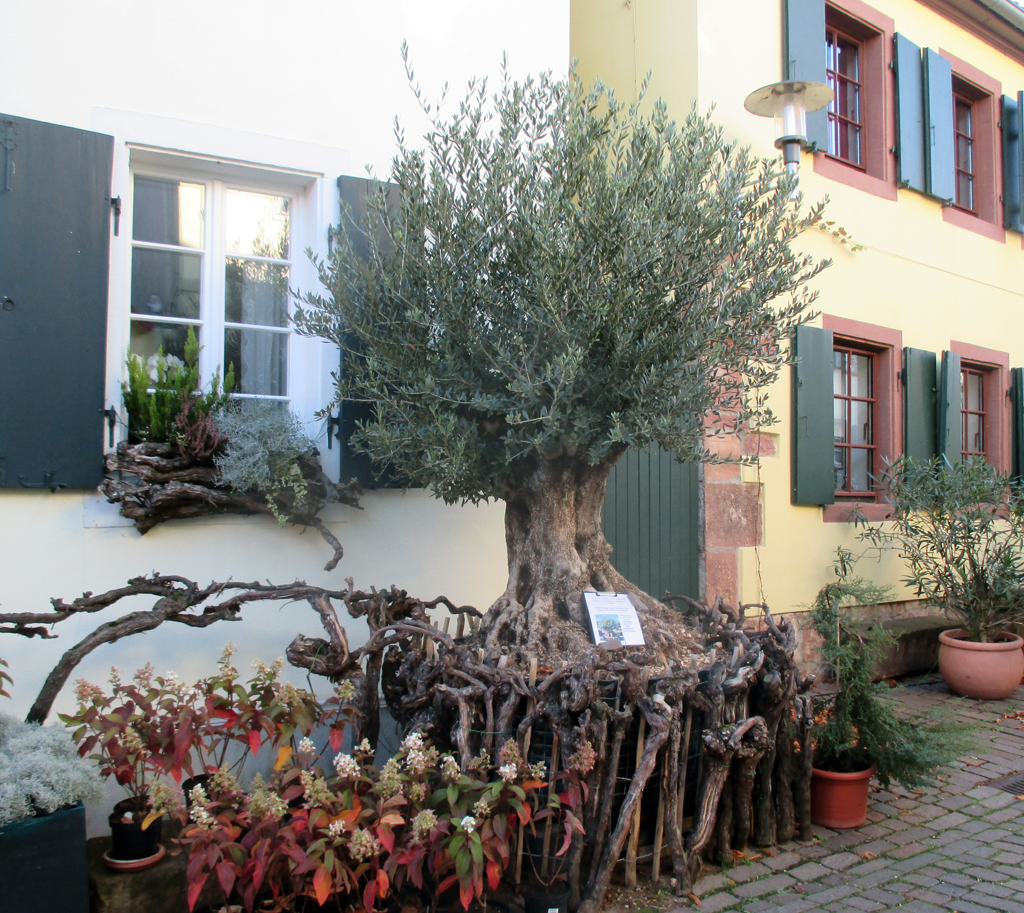 Dieser Olivenbaum (aus Spanien) ist etwa 350 Jahre alt. Eng geht es in den Weinorten zu, ...