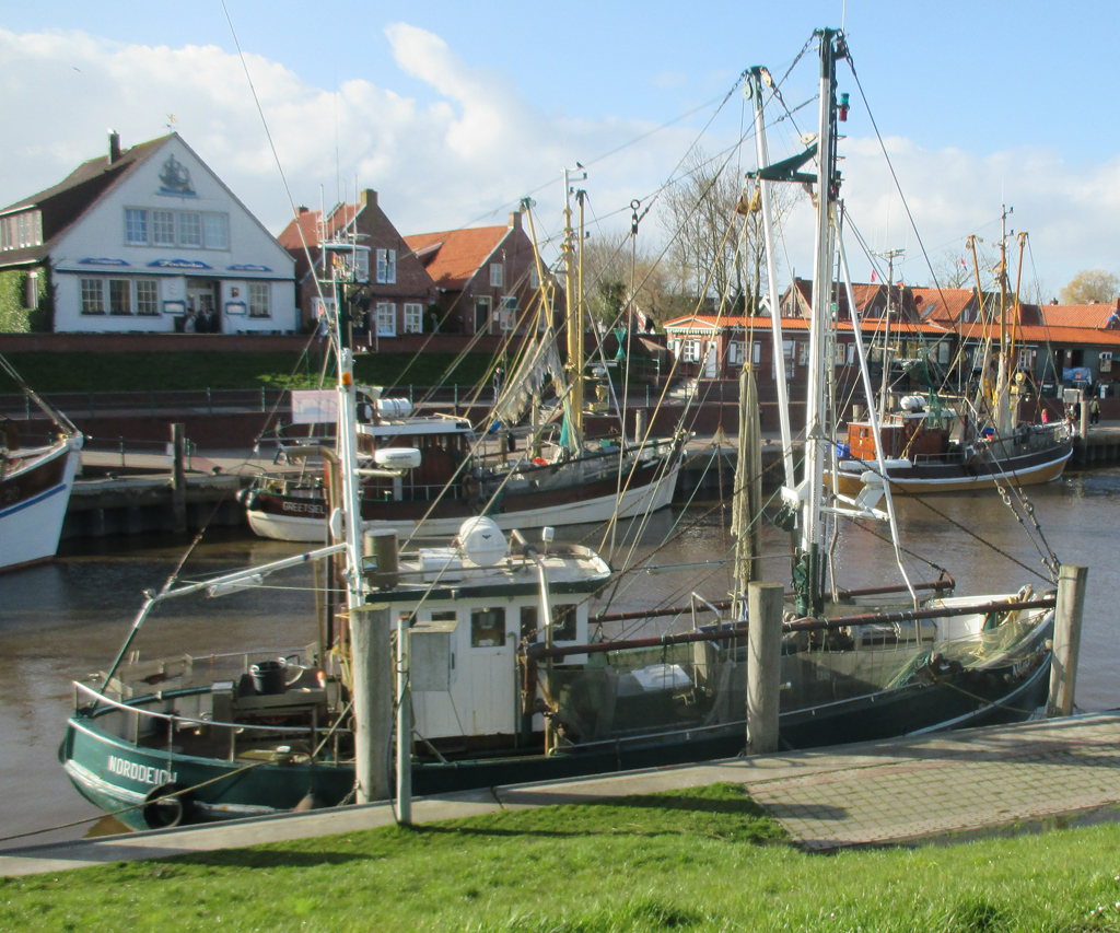 Greetsiel – Richtung Westen/Nordwesten. Von Bremervörde im Oste-Land zwischen Weser und Ems, wo wir gerade herkommen, sind es an Emden vorbei mit dem Auto noch 180 Kilometer. Nach Greetsiel. Landkreis Aurich. Niedersachsen.