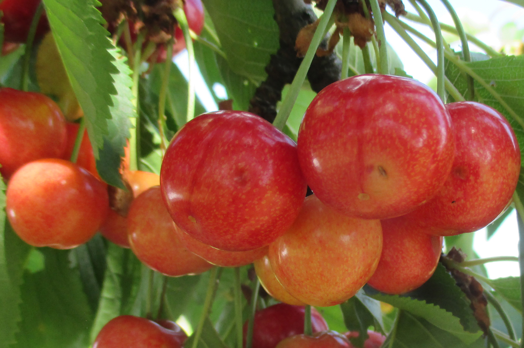 Diese Kirschen stammen aus einem Schindler Weingarten. Burgenland-Flagge in Mörbisch.