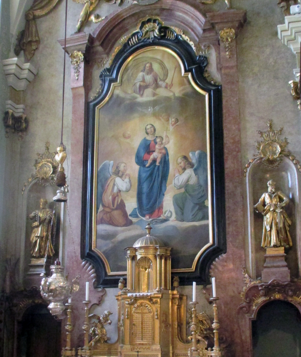 Haydn-Sarkophag in der Bergkirche. Altar in der kleinen Schloss-Kapelle.