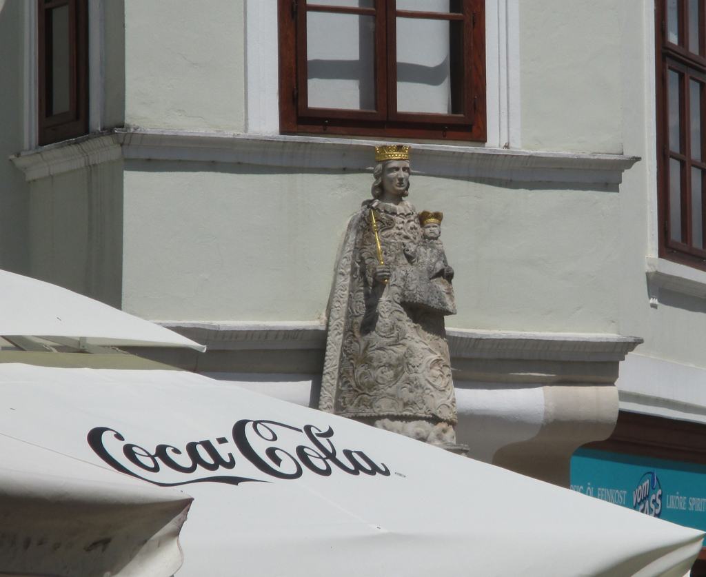 Vergangenheit trifft Gegenwart. Pestsäule in der burgenländischen Hauptstadt.