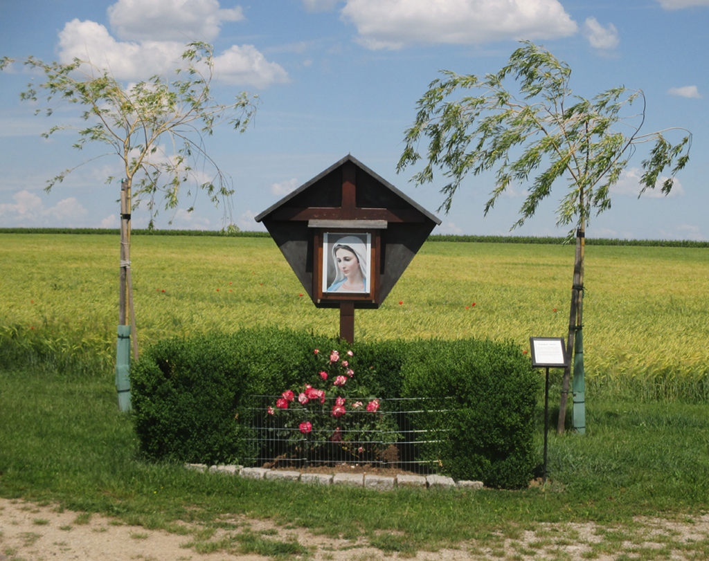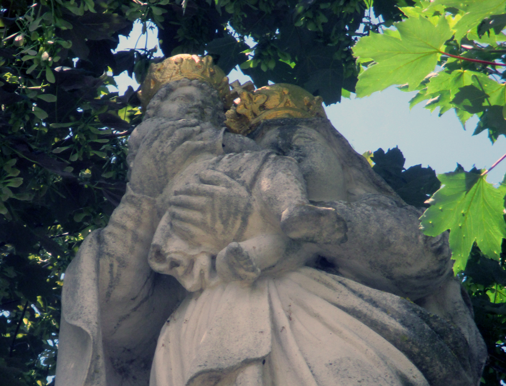 Religiöse Mutter/Kind-Statue vor Deutschkreutz. Wir sind im Land des Blaufränkischen.