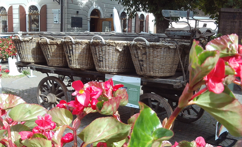 Mit Tramin, 3400 Einwohner, italienisch Termeno, dürften insbesondere Weinkenner etwas anzufangen wissen, stammen namentlich doch die Gewürztraminer von hier. Im Dorf mit dem auch in diesem Fall historischen Ortskern stehen im Sommer und Herbst quasi wöchentlich Weinfeste auf dem Programm. Der florierende Handel mit den Trauben hat Tramin zur „bevorrechteten Marktsiedlung“ gemacht. Wie die Erntezeit früher war? „Damals hat es den Weinbau und die Selbstversorgung mit Mais, Kartoffeln, Bohnen, Erbsen, Gemüse und Obst gegeben“, heißt es im Zusammenhang mit einer entsprechenden Ausstellung im Ort. Erst in der Zeit zwischen den Weltkriegen habe im Unterland der intensive Apfel- und Birnenanbau begonnen. Ab den 1950er-Jahren seien die Selbstversorgungskulturen in der Ebene schließlich in wenigen Jahrzehnten abgelöst worden. „Heu und Mais verschwanden genauso wie der Einsatz von Ochsen und Pferden für die alten Fuhrwerke.“ Mit dem Einsatz von Traktoren hätten sich schließlich auch die Formen des Transports geändert.