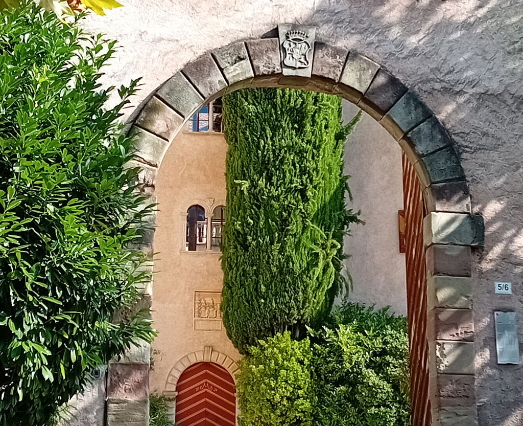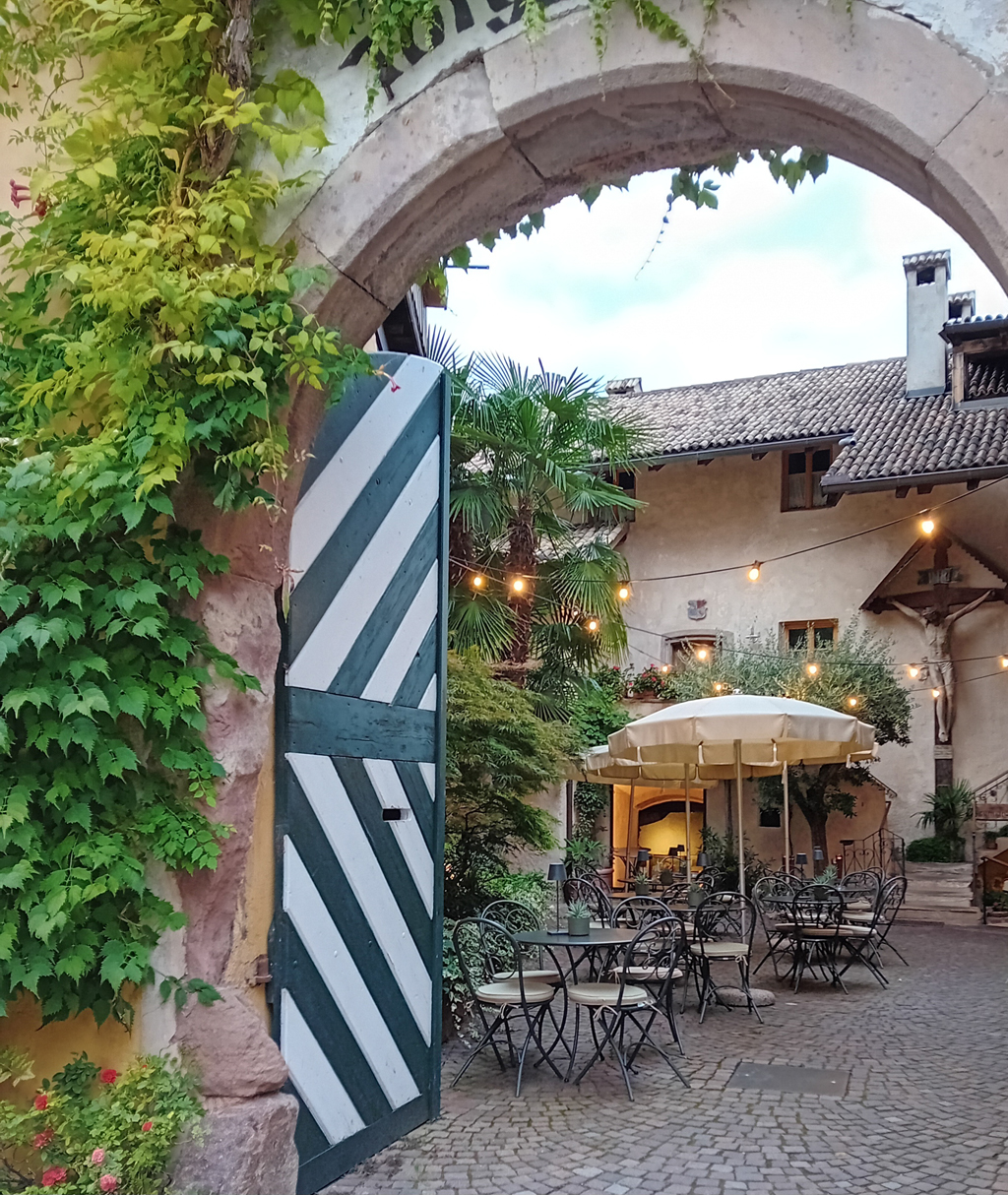 Bliebe unter den Orten im Unterland, die wir uns für unsere Reportagen über Südtirol angeschaut haben, noch Neumarkt, 5500 Einwohnr, italienisch Egna, zu Füßen des Castelfelder Hügels und Biotops mit Ruinen einer römischen Burganlage noch Neumarkt. An Reben gedeihen hier die des gehaltvollen Blauburgunders besonders gut. Im Naturpark Trudner Horn haben unter anderem auch Dachs, Gottesanbeterin, Kleber, Singzikade, Smaragdeidechse und Schneehase längst ein Zuhause gefunden. Im Fleimstal ist auf den Pisten von Cermis im Winter sogar Skifahren möglich. Vom ausgiebigen Radwegenetz im Tal der Etsch sowohl nach Norden wie nach Süden profitiert freilich nicht nur Neumarkt. Der frühe Wohlstand durch ganzjährigen Handel spiegelt sich auch hier nach wie vor im Ortskern wider. Wir gehen an alten Ansitzen vorbei, an beschaulich gestalteten Innenhöfen und Bauten im venezianischen Stil. Die Lauben(gänge) mitten im Dorf sind in den Jahren zwischen 1300 und 1600 entstanden. Kein Wunder, dass Neumarkt Mitglied der Vereinigung I borghi più belli d’Italia der schönsten Dörfer Italiens ist! In einer Nebengasse bleiben wir aus einem anderen Grund unter einer Gedenktafel stehen. „Auf seiner Todesfahrt nach Mantua“, ist darauf fast herzförmig grün umrandet zu lesen, „wurde in diesem Hause der Tiroler Freiheitskämpfer Andreas Hofer in der Nacht vom 30. auf den 31. Jänner 1810 gefangen gehalten.“