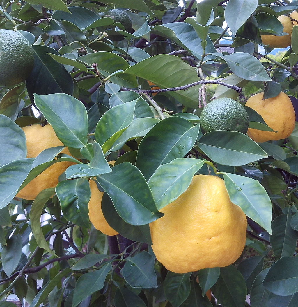 Zitronenbaum im Pool-Garten des Designhotels Panorama. Marende-Brotzeitteller.