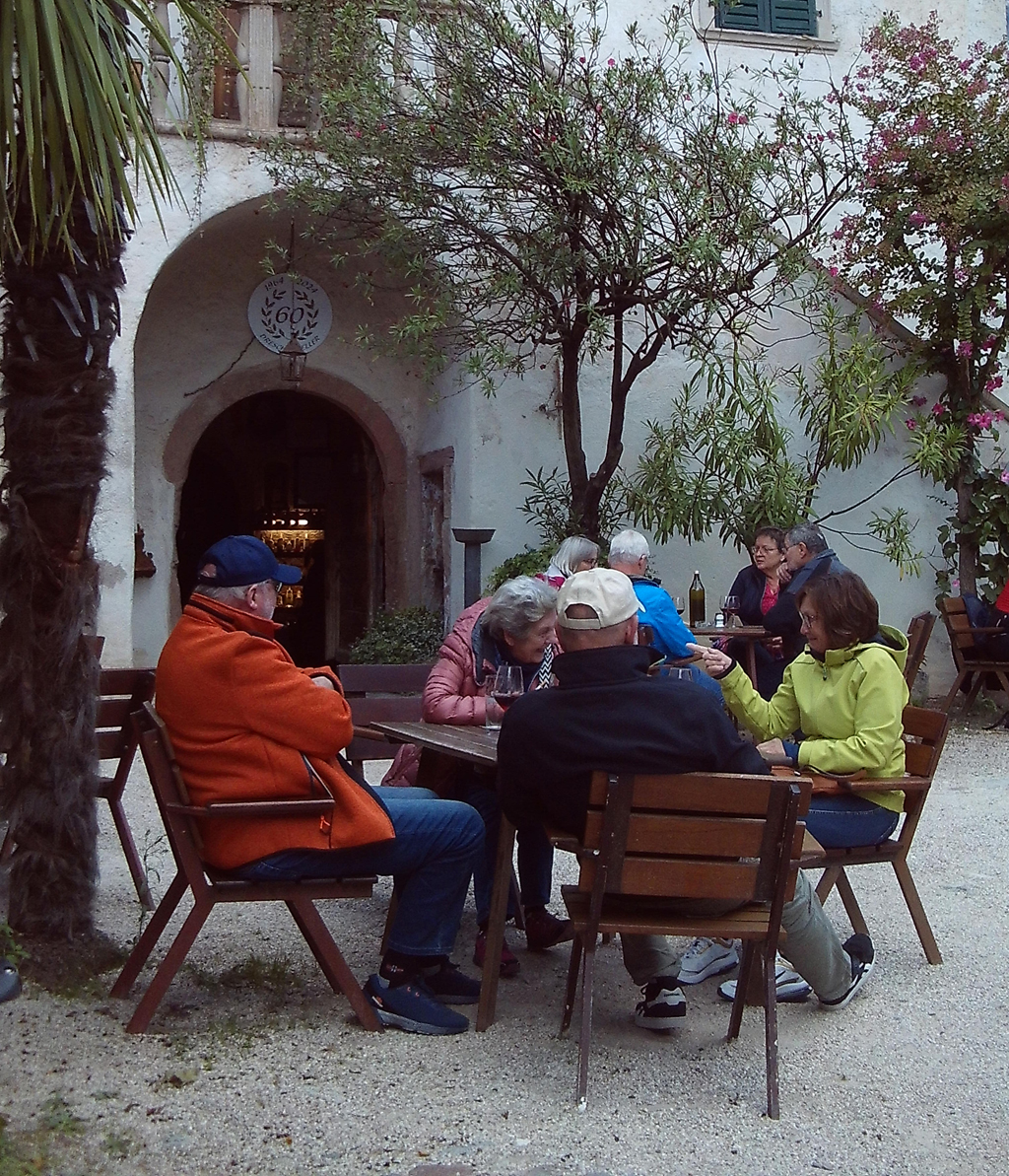 Die Orte breiten sich erst in Höhen ab über 200, im Fall von Tramin sogar bis über 2000 Metern aus. Im hügeligen und teilweise bergigen Land, das sich an den Rändern über dem Tal der Etsch erhebt, bleiben deshalb auch beim Wandern mehr oder weniger anstrengende Aufstiege nicht selten aus. Deren Längen, Steigungen und Bodenbeschaffenheiten vom Schotter über Steine bis hin zu Baumwurzeln nicht unterschätzen! Was zum Beispiel besonders gilt für eine Tour vom Kalterer See hinauf nach Tramin, am Mendelkamm entlang Richtung Grenze zum benachbarten Trentino oder vom Kalterer Ortsteil Oberplanitzing erst hoch zu den Eislöchern, dann noch höher zum Steinegger und zuletzt zum Schloss oder zur Villa Matschatsch. Aber das ist eine ganz andere, eine tierisch-bärige Geschichte, die wir noch erzählen. Und was uns betrifft und das Wandern, sind wir nach sechs reinen Zu-Fuß- und vier kombinierten Zu-Fuß-/Bus-Touren am Ende zusammengefasst unterm Strich auf 28 Stunden, exakt 157 711 Schritte und 101 Kilometer gekommen.