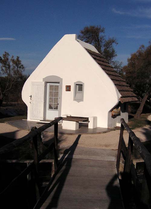 Wir quartieren uns in der Auberge Cavaliere ein. Die putzigen Cabannes des Hotels an der Straße nach Arles erinnern trotz ihrer gestreckten Form ein wenig an die Trulli genannten Zipfelmützen-Rundhütten im apulischen Alberobello. Der Mistral lässt nicht locker. Auch am nächsten Tag nicht, an dem wir die Gegend erkunden. Die Oberflächen der vielen Stehgewässer kräuselt er zu wogenden kleinen Wellen. Die Camargue soll das größte Flussdelta Europas sein. Der meist aus Schwemmland bestehende Boden schafft günstige Bedingungen zur landwirtschaftlichen Nutzung. Aus dem Meerwasser wird Salz gewonnen.