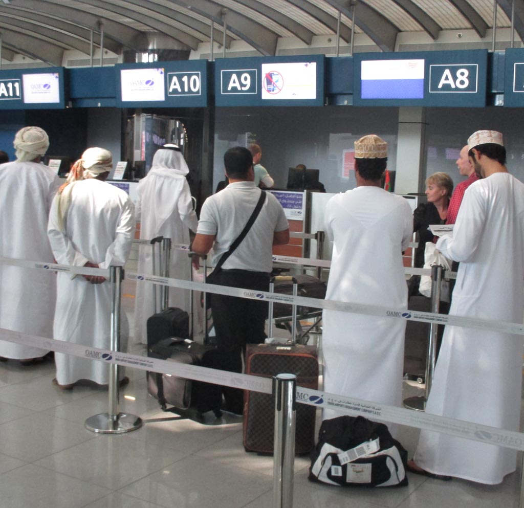 Wir sind im Oman. Es ist früh am Morgen. Und die Temperaturen erreichen jetzt schon 30 Grad. Auf dem Flughafen der im Norden am Golf von Oman gelegenen Hauptstadt Muscat hat der Betrieb gerade erst begonnen. Salalah! Salalah! Salalah! Als würde es nur diesen einen Ort geben im Land, weisen Mitarbeiter des Bodenpersonals Transitpassagieren des Oman-Air-Nachtflugs aus Frankfurt hilfreich Stempel für Stempel den Weg durch ein Labyrinth von Sicherheits-, Pass-, Visa- und Bordkartenkontrollen. Überall hängen Bilder von Qabus ibn Sa’id Al Sa’id an der Wand. Der Sultan ist der Herrscher im Oman. Er hat das einst weitgehend abgeschottete Land mutig und weltoffen in die Moderne geführt.