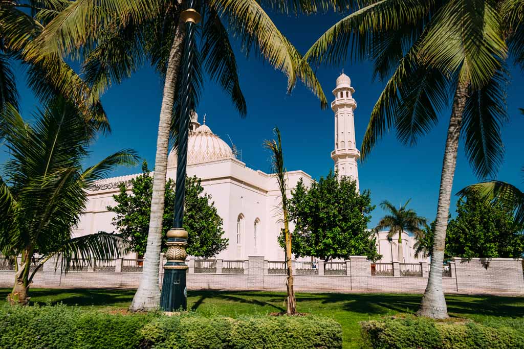 Es ist schon spät am Nachmittag. Aus den Lautsprechern eines Minaretts in Salalah ruft ein Muezzin zum Gebet. Auch im alten Stadtteil al-Hafah kehrt langsam so etwas wie Ruhe ein. Nicht weit entfernt davon steht der Sommerpalast des mittlerweile schon seit 1970 regierenden Sultans. Eine 2009 eingeweihte neue Moschee trägt seinen Namen. „Das sollten Sie vielleicht noch wissen, wenn Sie nach Salalah fliegen“, hat der ältere Omani gesagt: „Sultan Qabus ibn Sa’id Al Sa’id ist da geboren!“ Am 18. November 1940. Dieser Tag, den das ganze Land inzwischen als Nationalfeiertag feiert, habe „diese Stadt, die Leuchtende, nur noch leuchtender gemacht!“ Salalah!