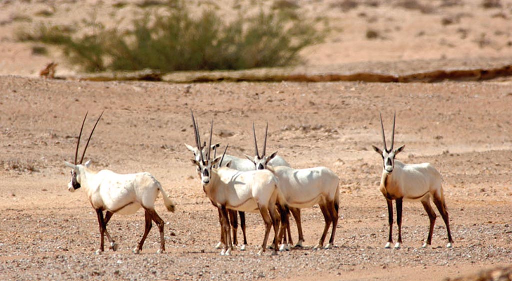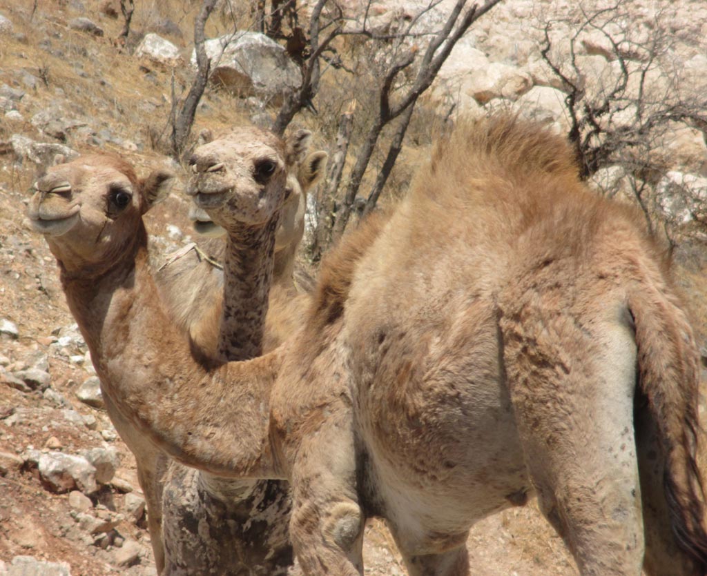 Das Klima in den höheren Lagen ist angenehmer. Wir fahren und fahren, ohne dass uns ein anderes Auto entgegenkommt. Nur vereinzelt sind Zelte und Hütten mit meist leeren Viehpferchen davor zu sehen. An einer Wegweisung mit arabischer und englischer Schrift bleiben wir stehen. Geradeaus geht es nach Hagaif, links nach Ayoon. „Ein schöner Ort“, hat man uns im Hotel gesagt. „Sie finden da einen See und ein Tal, in dem noch der seltene Arabische Leopard umherstreifen soll!“ Im Reiseführer steht, der Oman sei zudem eines der letzten Refugien der Arabischen Oryxantilope.