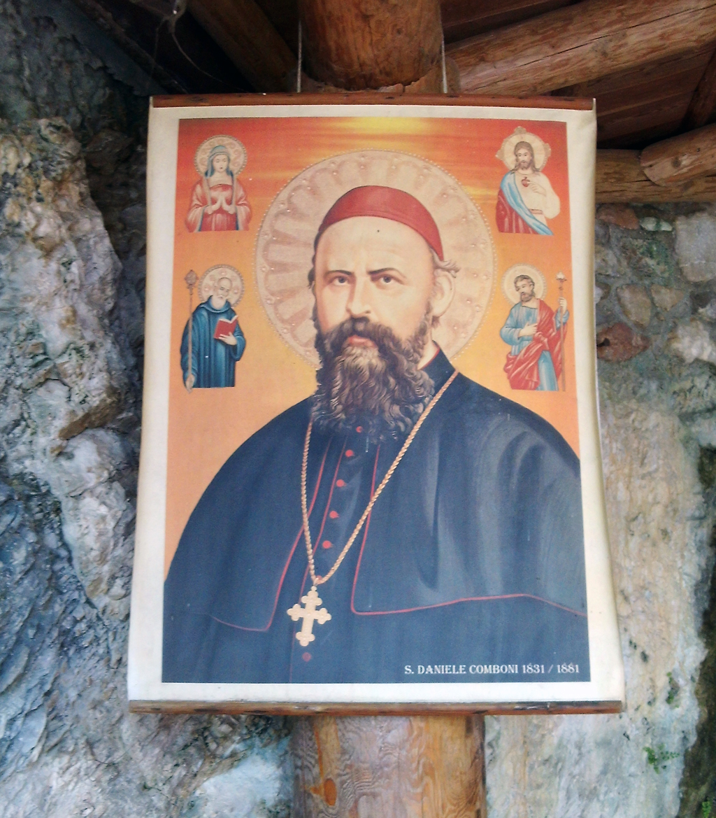 Daniele Comboni ist in Limone geboren. Die Pfeiler gehören zum Zitronengarten.