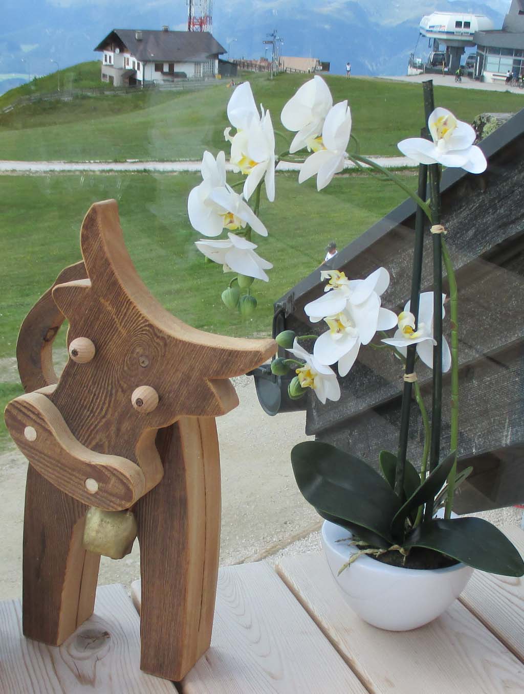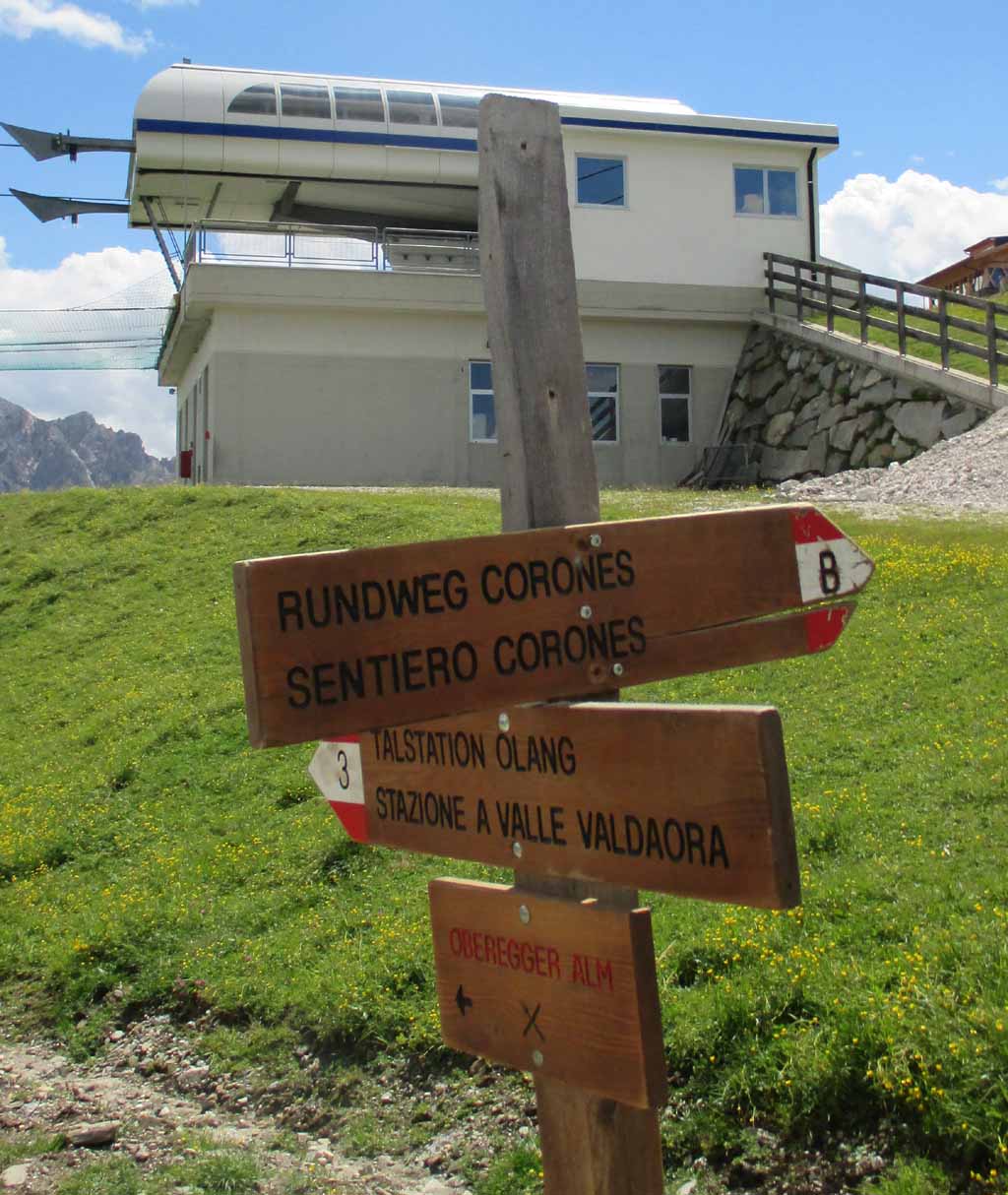 Es ist der letzte Freitag im Juli. Die Sonne brennt vom nur leicht bewölkten Himmel. Ein Landwirt mäht in Sichtweise mit seinem Traktor an einem Steilhang eine Wiese. Um die Mittagszeit ist nicht so viel los an der Basisstation der Gondelbahn in Olang bei Bruneck im Osten Südtirols. Und weil wir sowieso noch etwas warten müssen, bleibt Zeit zum Erzählen.