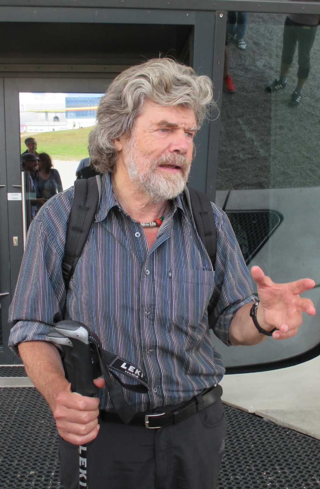 Der Südtiroler, geboren am 17. September 1944 in Brixen, wächst in einer Großfamilie zusammen mit acht Geschwistern in Villnöß auf, studiert Vermessung und arbeitet kurz als Mittelschullehrer, ehe er sich auch beruflich aufs Klettern und aufs Höhenbergsteigen konzentriert. Expeditionen führen ihn auf alle 14 Achttausender, zweimal auf den mit 8848 Metern höchsten Berg der Welt, den Mount Everest, dazu in Polarregionen, nach Grönland und in Wüsten. Heute lebt der verheiratete vierfache Vater in Meran und auf seinem Schloss Juval im Vinschgauer Schnalstal, ist Bergbauer, züchtet Yaks, schreibt Bücher und hält Vorträge. Seine Stiftung Messner Mountain Foundation unterstützt Bergvölker. Sein Projekt Messner Mountain Museum fasst Themenmuseen an sechs verschiedenen Standorten in Südtirol und im Trentino zusammen.