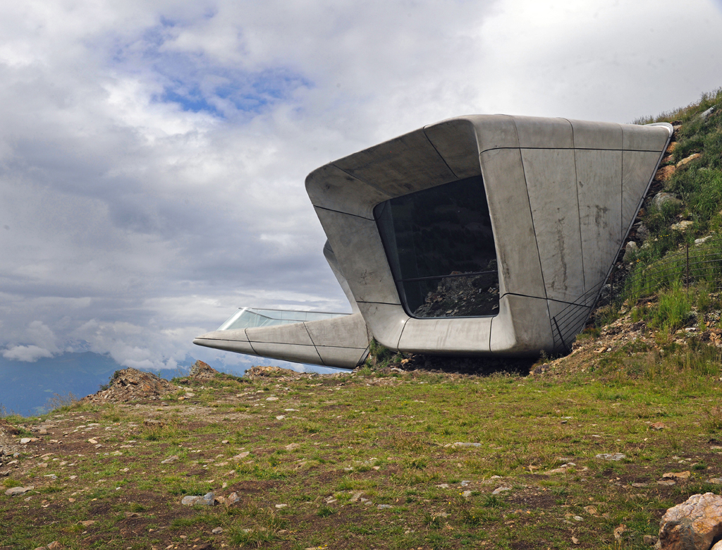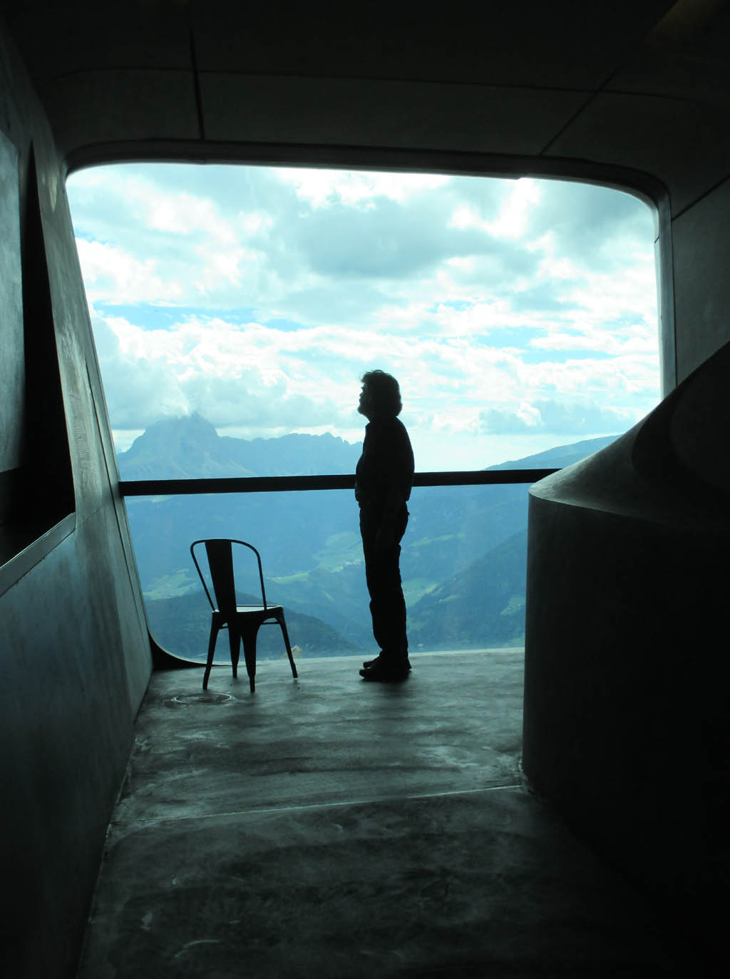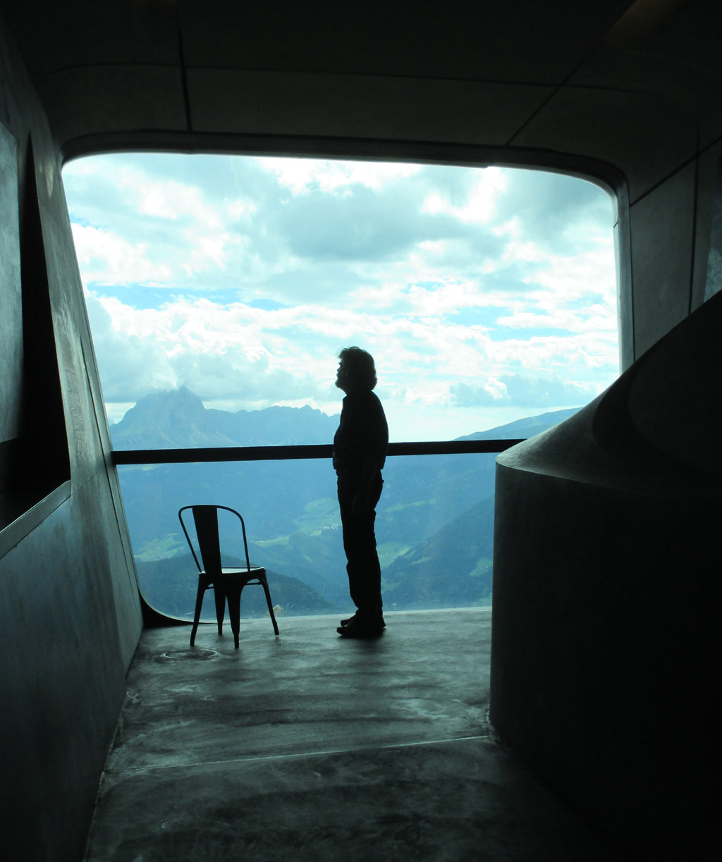 Spektakulär hat es die renommierte Architektin Zaha Hadid in den Fels hauen lassen. Innen geht der Blick in alle vier Himmelsrichtungen. Zu den Lienzer Dolomiten im Osten, zur Marmolada im Süden, zum Ortler im Westen und zu den Zillertaler Alpen im Norden. Schon am Eingang fragt Messner nachdenklich, wo eigentlich der Alpinismus beginnt, wenn der Tourismus den Gipfel des Mount Everest erreicht ...